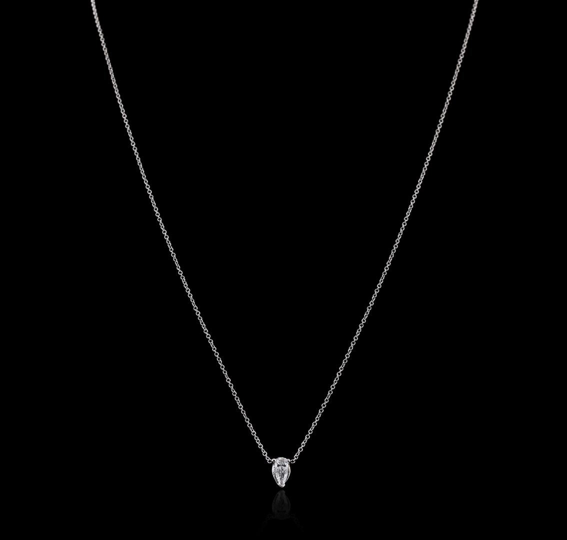One solitaire necklace featuring: 14KT white gold weighing 1.31 grams containing one diamond with a total weight of 0.36ct.