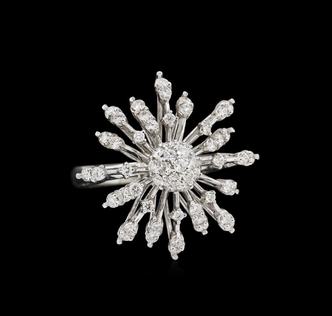 One electronically tested 14KT white gold ladies cast diamond ring with a bright polish finish. Identified with markings of "14K". Condition is new. Containing: Fifty-Nine prong set round brilliant cut diamonds, measuring 1.30 - 1.10 x 0.72mm (depth est.) approximate total weight of 59 Stones = 0.37ct. Clarity: SI-1 to SI-2. Color: H - I, Cut is Good. All diamonds are graded in the mounting, unless otherwise stated. Total Weight of Diamonds 0.37ct. Total Weight of Ring 7.20 grams. GGL Appraised at $3,170.00.