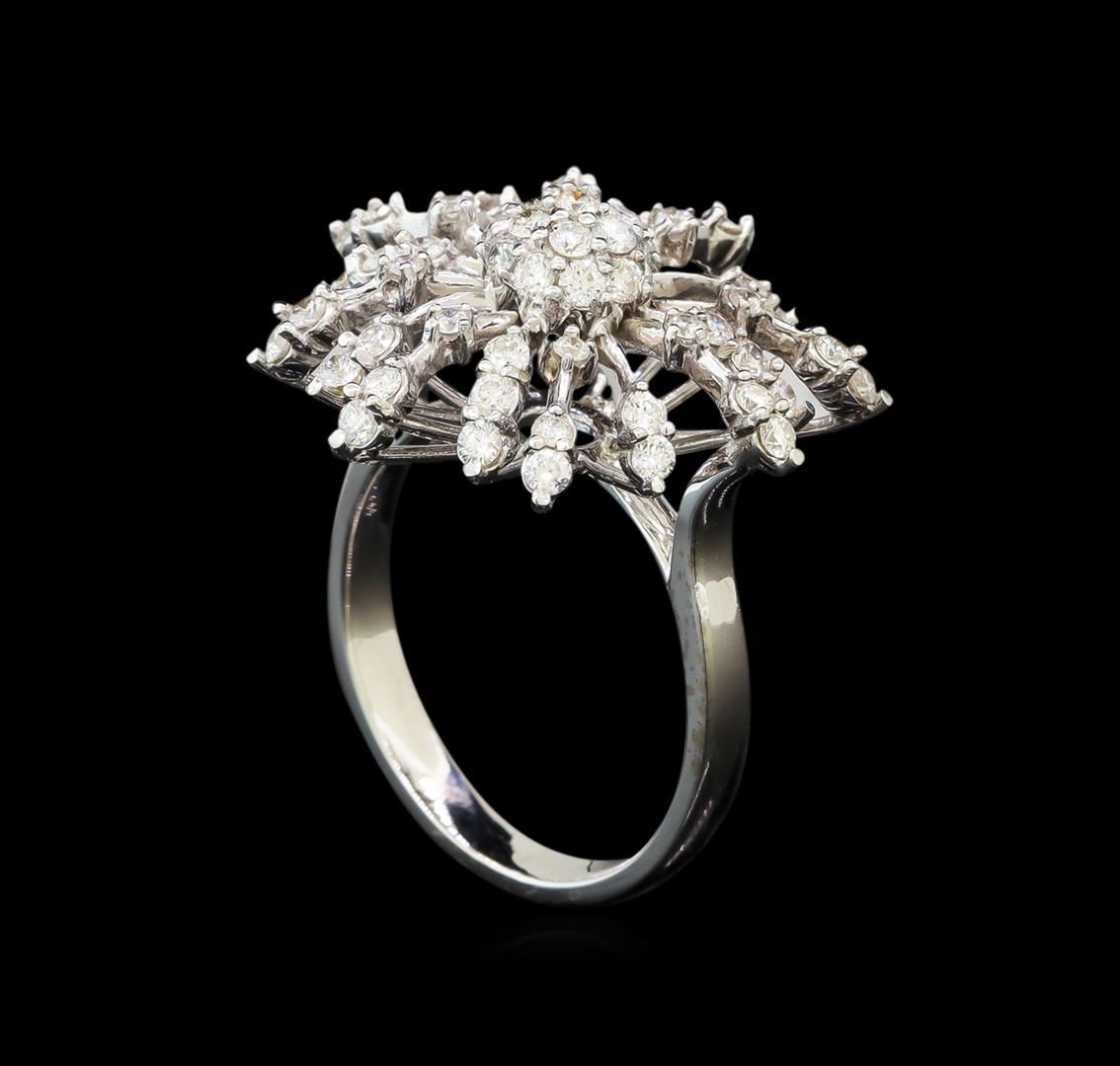 One electronically tested 14KT white gold ladies cast diamond ring with a bright polish finish. Identified with markings of "14K". Condition is new. Containing: Fifty-Nine prong set round brilliant cut diamonds, measuring 1.30 - 1.10 x 0.72mm (depth est.) approximate total weight of 59 Stones = 0.37ct. Clarity: SI-1 to SI-2. Color: H - I, Cut is Good. All diamonds are graded in the mounting, unless otherwise stated. Total Weight of Diamonds 0.37ct. Total Weight of Ring 7.20 grams. GGL Appraised at $3,170.00.