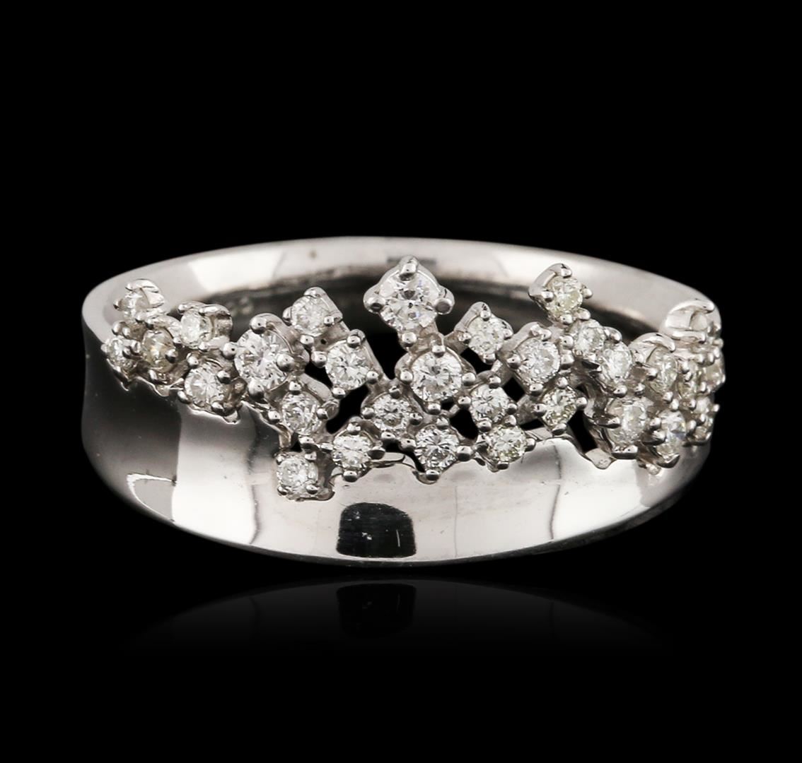 One ring featuring: 14KT white gold weighing 3.80 grams containing prong set round diamonds with a total weight of 0.38ct.