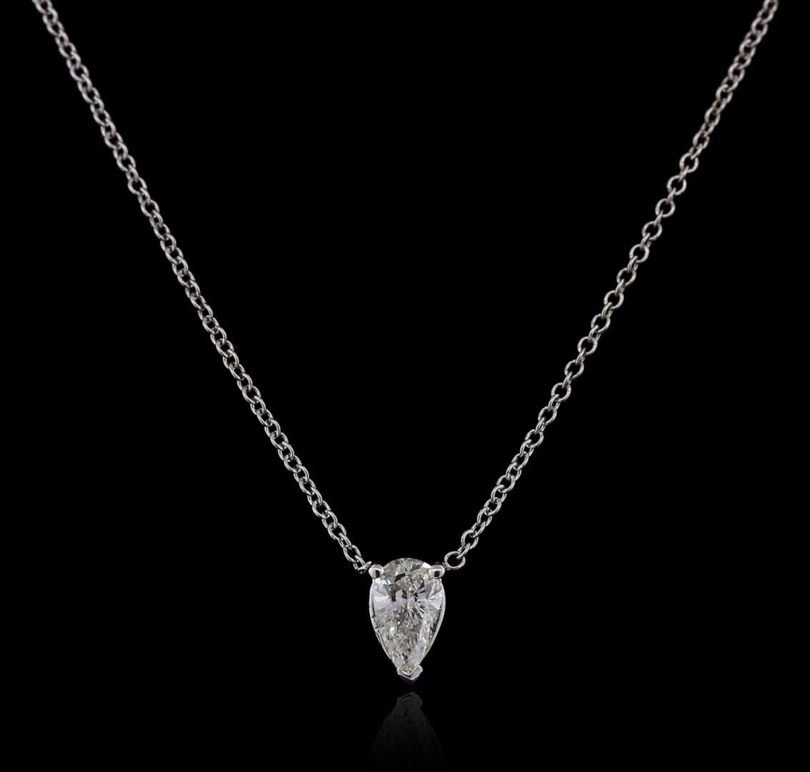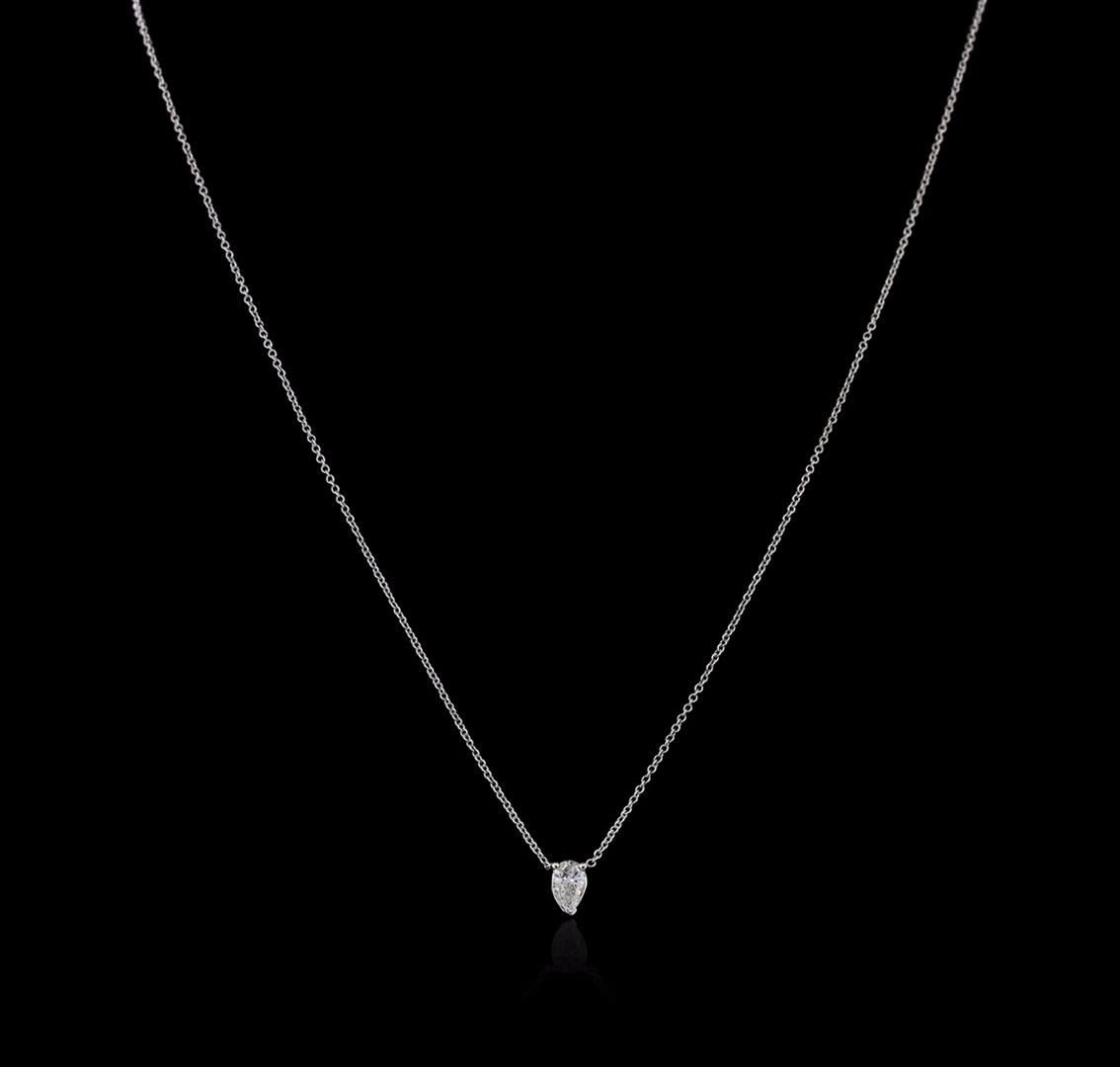 One solitaire necklace featuring: 14KT white gold weighing 1.28 grams containing one diamond with a total weight of 0.38ct.
