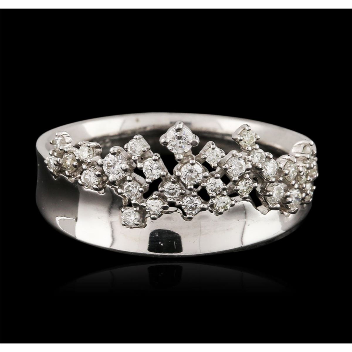 One ring featuring: 14KT white gold weighing 3.80 grams containing prong set round diamonds with a total weight of 0.38ct.