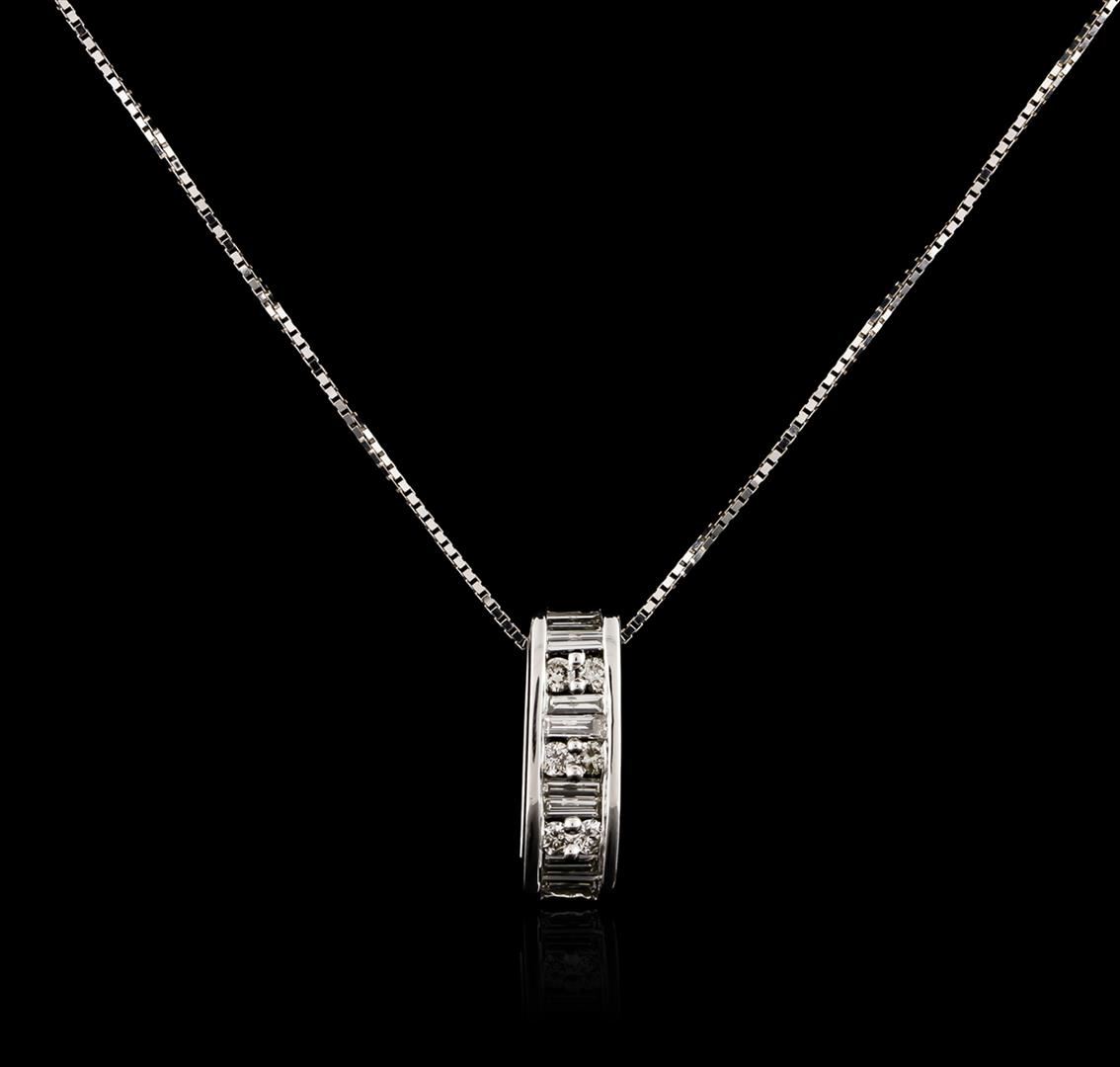 One pendant with chain featuring: 14KT white gold weighing 2.68 grams containing diamonds with a total weight of 0.40ct.