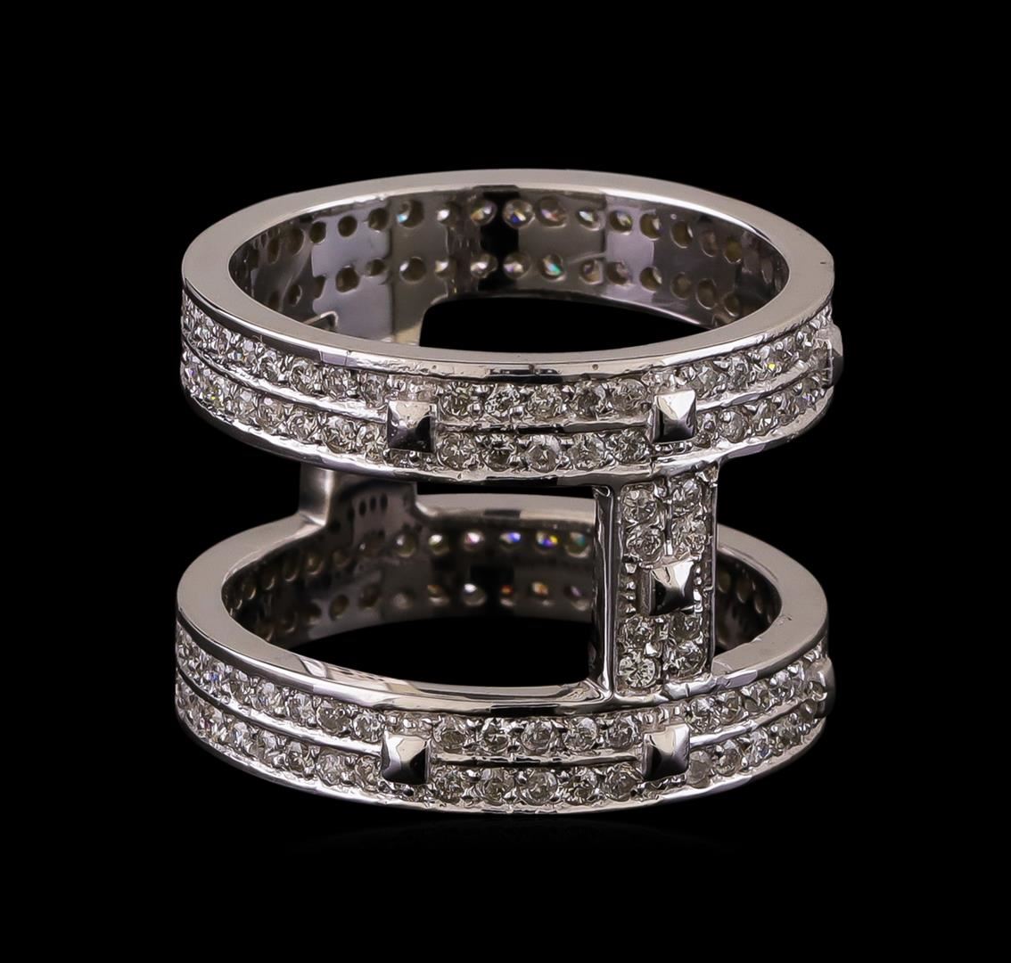 One electronically tested 14KT white gold ladies cast diamond ring with a bright polish finish. Identified with markings of "14K". Condition is new. Containing: One Hundred Sixteen prong set round brilliant cut diamonds, measuring 1.00 - 1.00 x 0.60mm (depth est.) approximate total weight of 116 Stones = 0.42ct. Clarity: I-1 to I-2. Color: I - J. All diamonds are graded in the mounting, unless otherwise stated. Total Weight of Diamonds 0.42ct. Total Weight of Ring 7.90 grams. GGL Appraised.