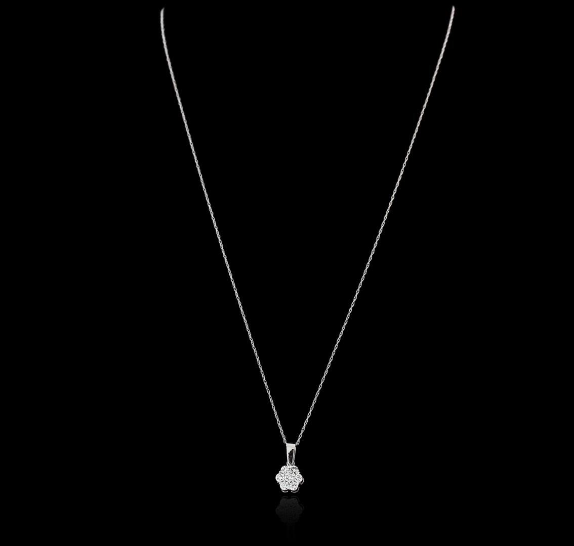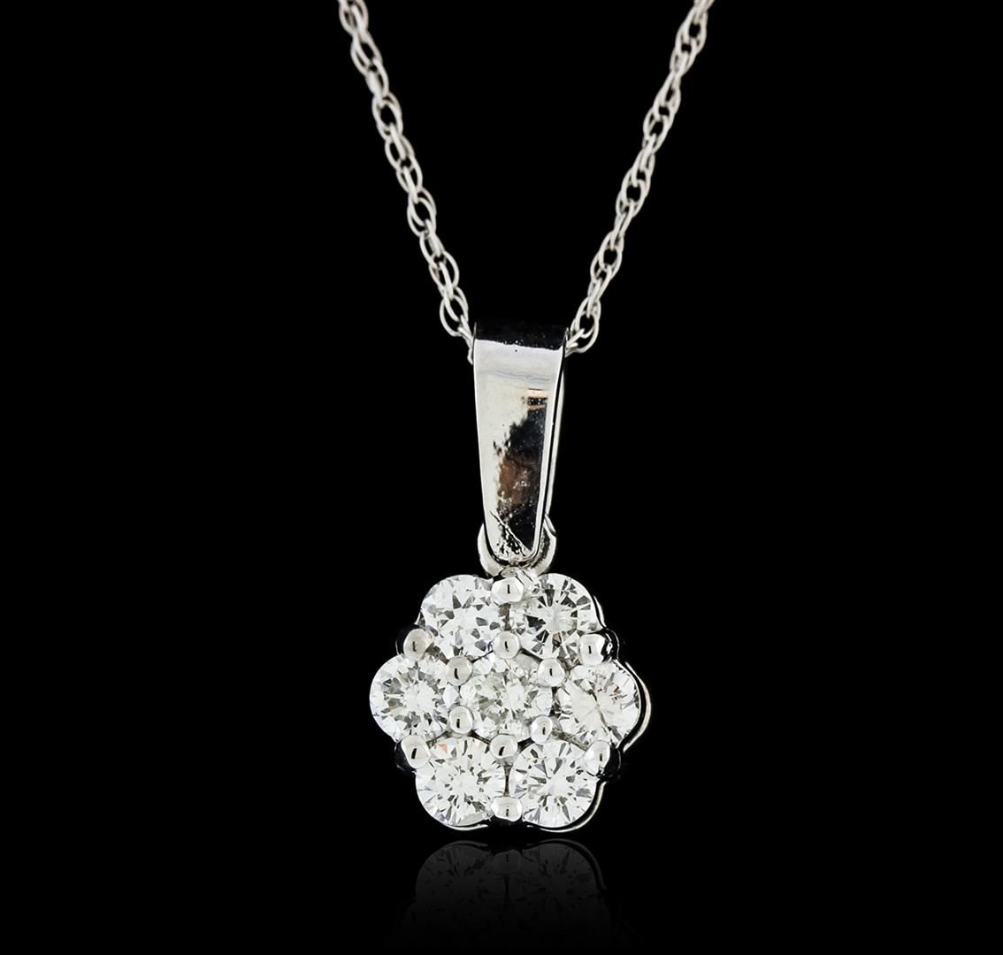 One pendant with chain featuring: 14KT white gold weighing 0.92 grams containing prong set round diamonds with a total weight of 0.42ct.