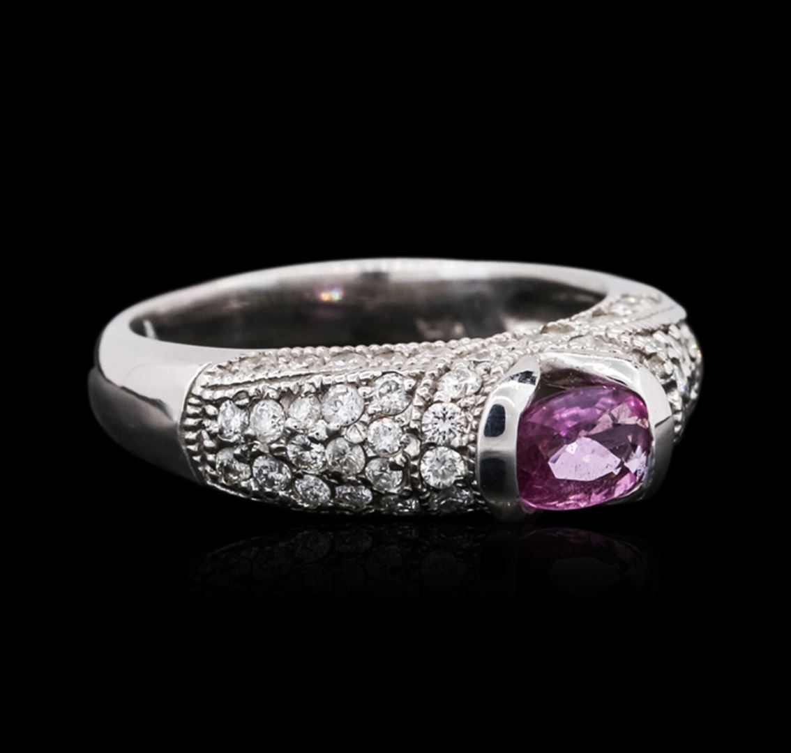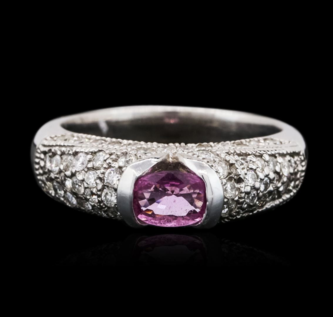 One ring featuring: 14KT white gold weighing 4.40 grams containing one pink sapphire with a total weight of 0.43cts and round diamonds with a total weight of 0.78cts.