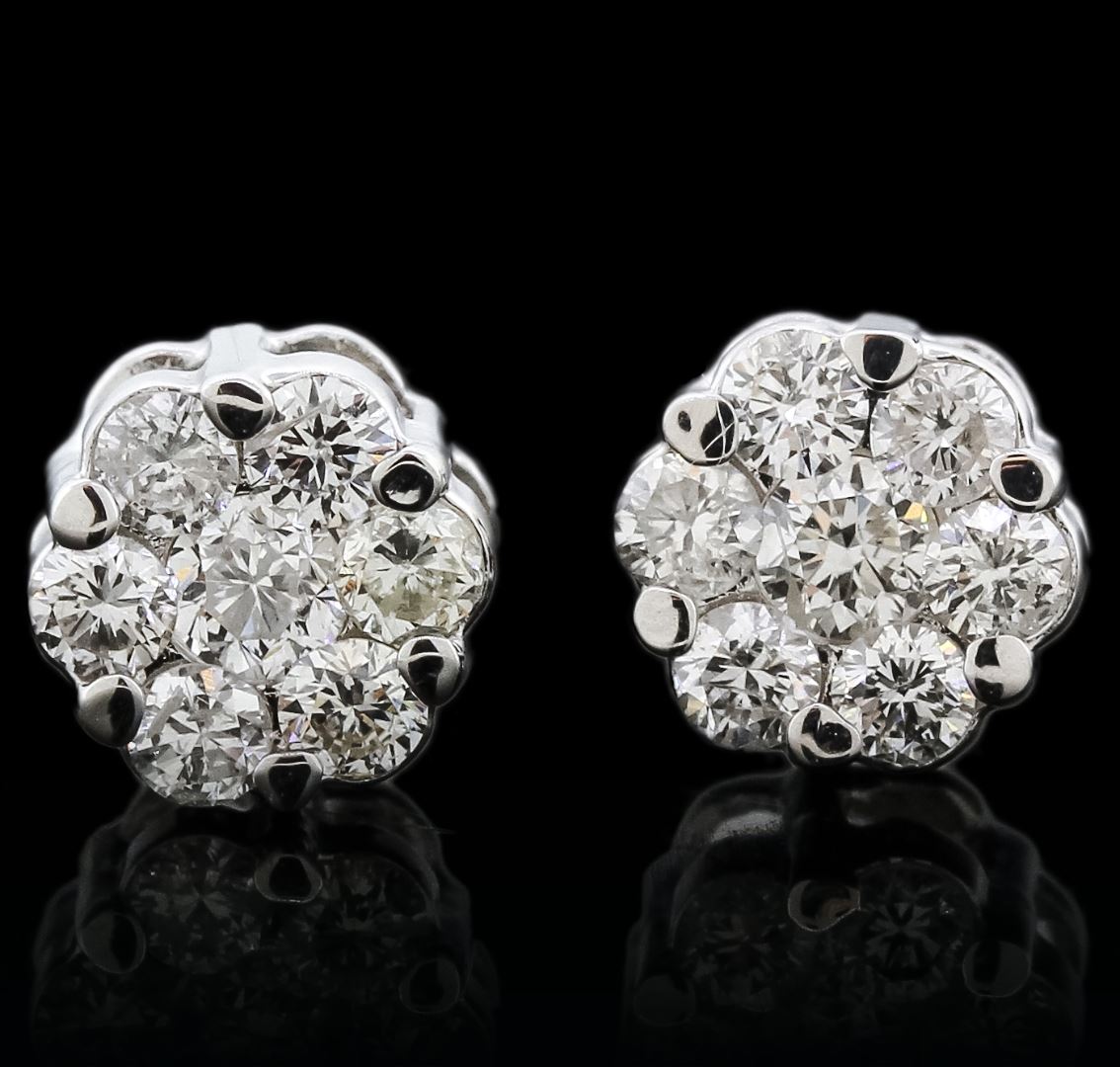 One pair of earrings featuring: 14KT white gold weighing 1.10 grams containing diamonds with a total weight of 0.44ct.