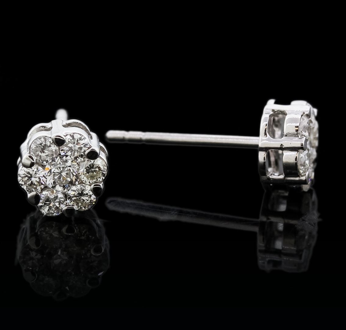 One pair of earrings featuring: 14KT white gold weighing 1.10 grams containing diamonds with a total weight of 0.44ct.