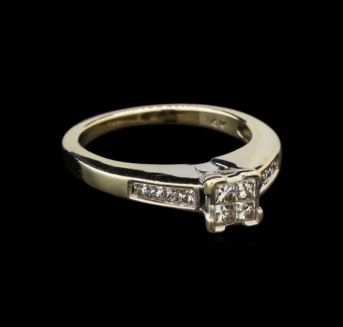 One electronically tested 14KT white gold ladies cast diamond unity ring with a bright polish finish. The ring features an invisible set diamond cluster supported by diamond set shoulders, completed by a one and one-half millimeter wide band. Identified with markings of "14K". Condition is good. Containing: Four invisible set princess cut diamonds, measuring 2.10 x 2.00 x 1.50mm (depth est.) approximate total weight of 4 Stones = 0.25ct. Graded in the setting. Clarity: SI-2 to I-1. Color: I - J Eight channel set princess cut diamonds, measuring 1.70 x 1.50 x 1.13mm (depth est.) approximate total weight of 8 Stones = 0.20 ct. Graded in the setting. Clarity: SI-2 to I-1. Color: I - K. Total Weight of Diamonds 0.45ct. Total Weight of Ring 3.80 grams. AIG Appraised.