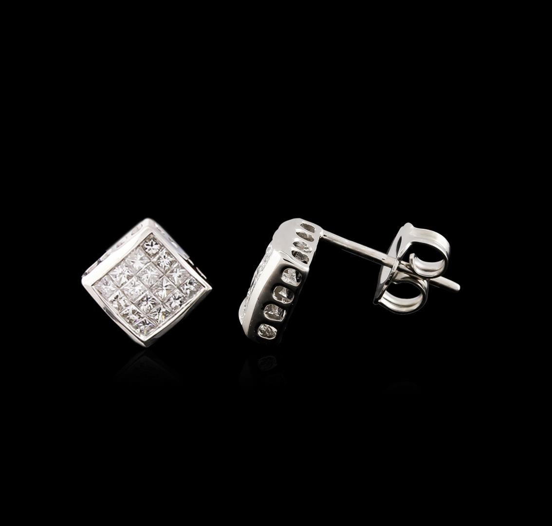 One pair of earrings featuring: 14KT white gold weighing 1.60 grams containing diamonds with a total weight of 0.45ct.