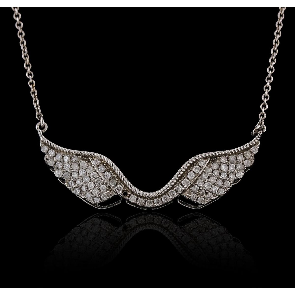 One electronically tested 14KT white gold ladies cast diamond necklace with a lobster claw clasp with a bright polish finish. Measurements: 16" in length Identified with markings of "585". Condition is new. Containing: Seventy-Three prong set round brilliant cut diamonds, measuring 1.20 - 1.20 x 0.72mm (depth est.) approximate total weight of 73 Stones = 0.46ct. Clarity: I-1 to I-2. Color: I - J, Cut is Good. All diamonds are graded in the mounting, unless otherwise stated. Total Weight of Diamonds 0.46ct. Total Weight of Necklace 4.80 grams. GGL Appraised at $2,925.00.