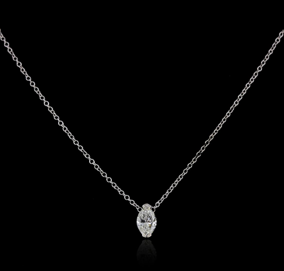 One solitaire necklace featuring: 14KT white gold weighing 1.26 grams containing one diamond with a total weight of 0.47ct.