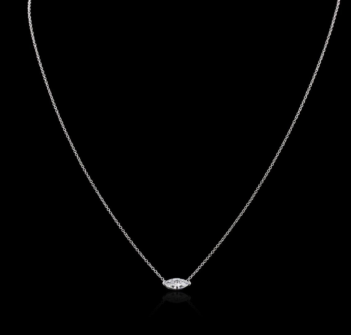 One solitaire necklace featuring: 14KT white gold weighing 1.37 grams containing one diamond with a total weight of 0.48ct.