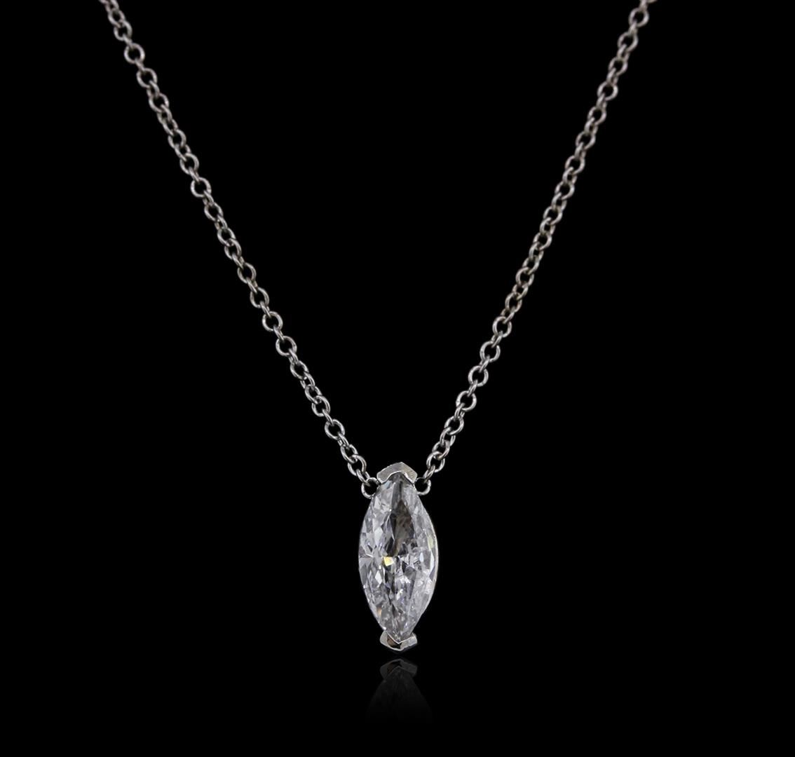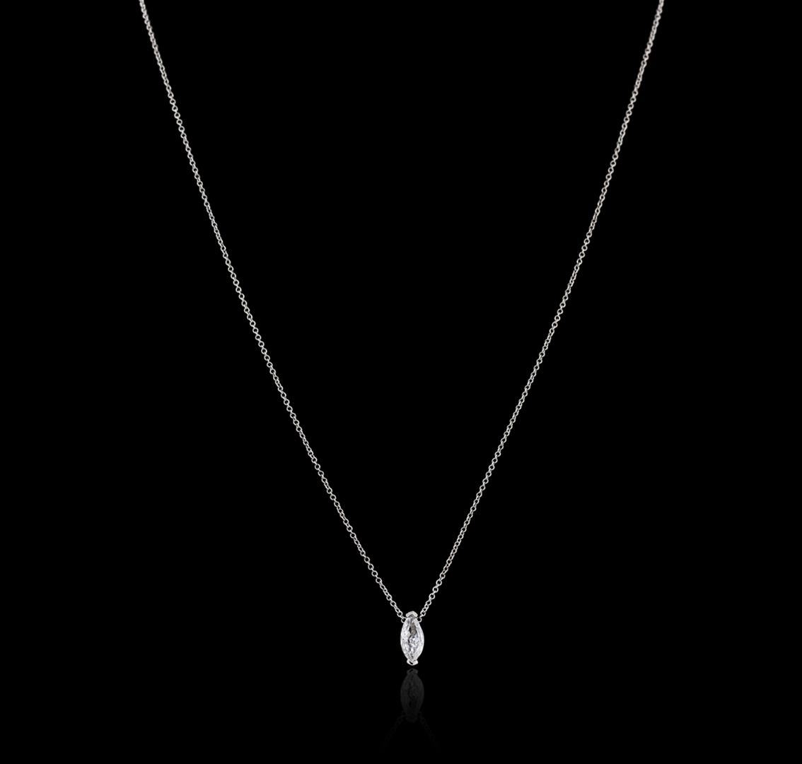 One solitaire necklace featuring: 14KT white gold weighing 1.35 grams containing one diamond with a total weight of 0.49ct.