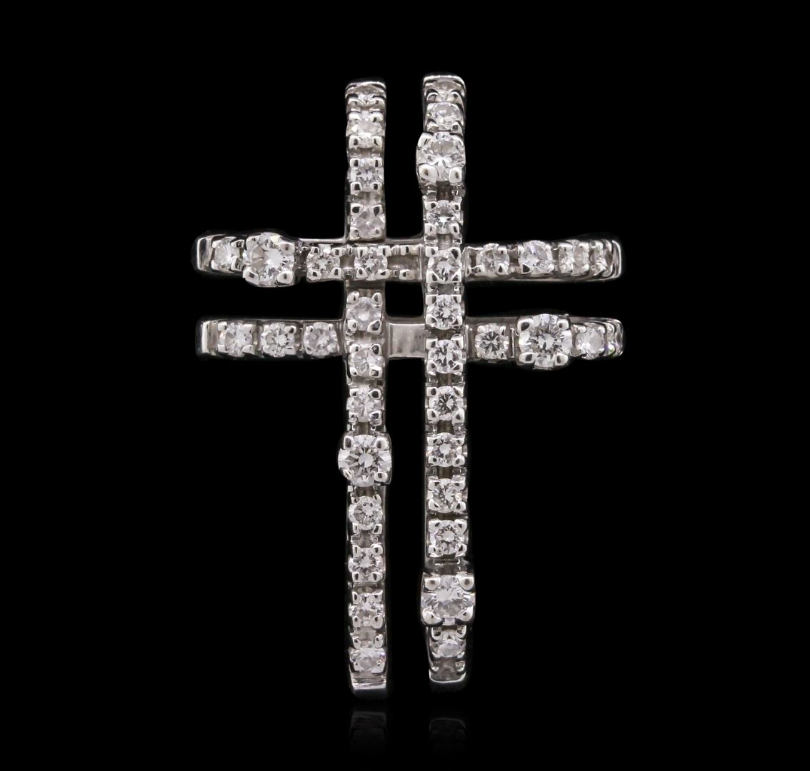 One cross pendant featuring: 14KT white gold weighing 3.60 grams containing round diamonds with a total weight of 0.49ct.
