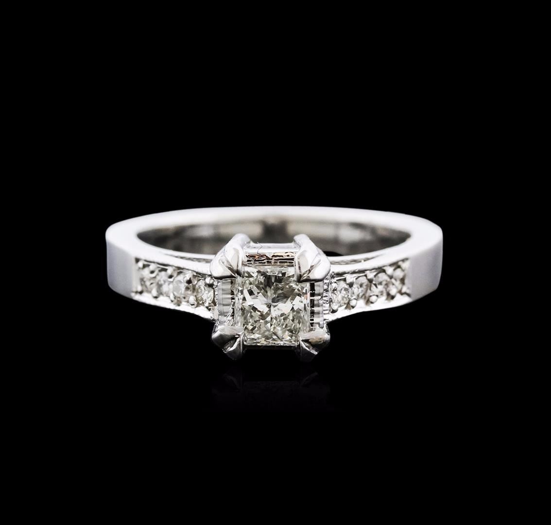 One ring featuring: 14KT white gold weighing 4.54 grams containing one princess cut diamond weighing 0.44ct and round cut diamonds weighing a total of 0.05ct.