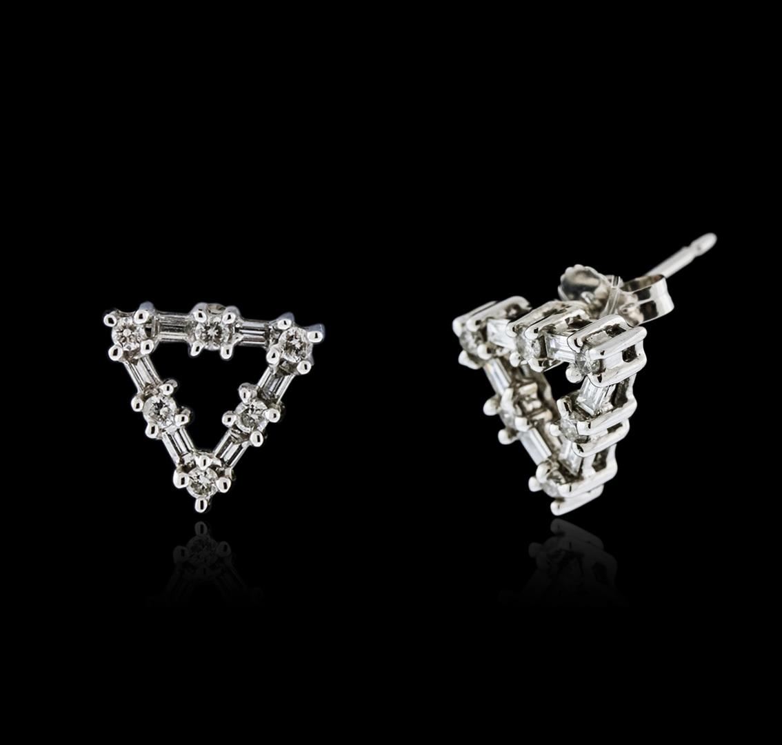 One pair of earrings featuring: 14KT white gold weighing 2.00 grams containing diamonds with a total weight of 0.50ct.