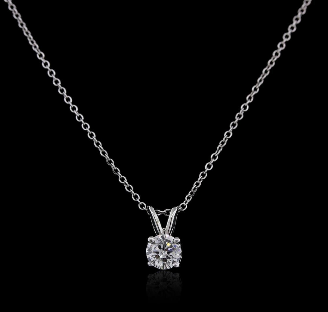 One solitaire pendant with chain featuring: 14KT white gold weighing 0.60 grams containing one diamond with a total weight of 0.50ct.