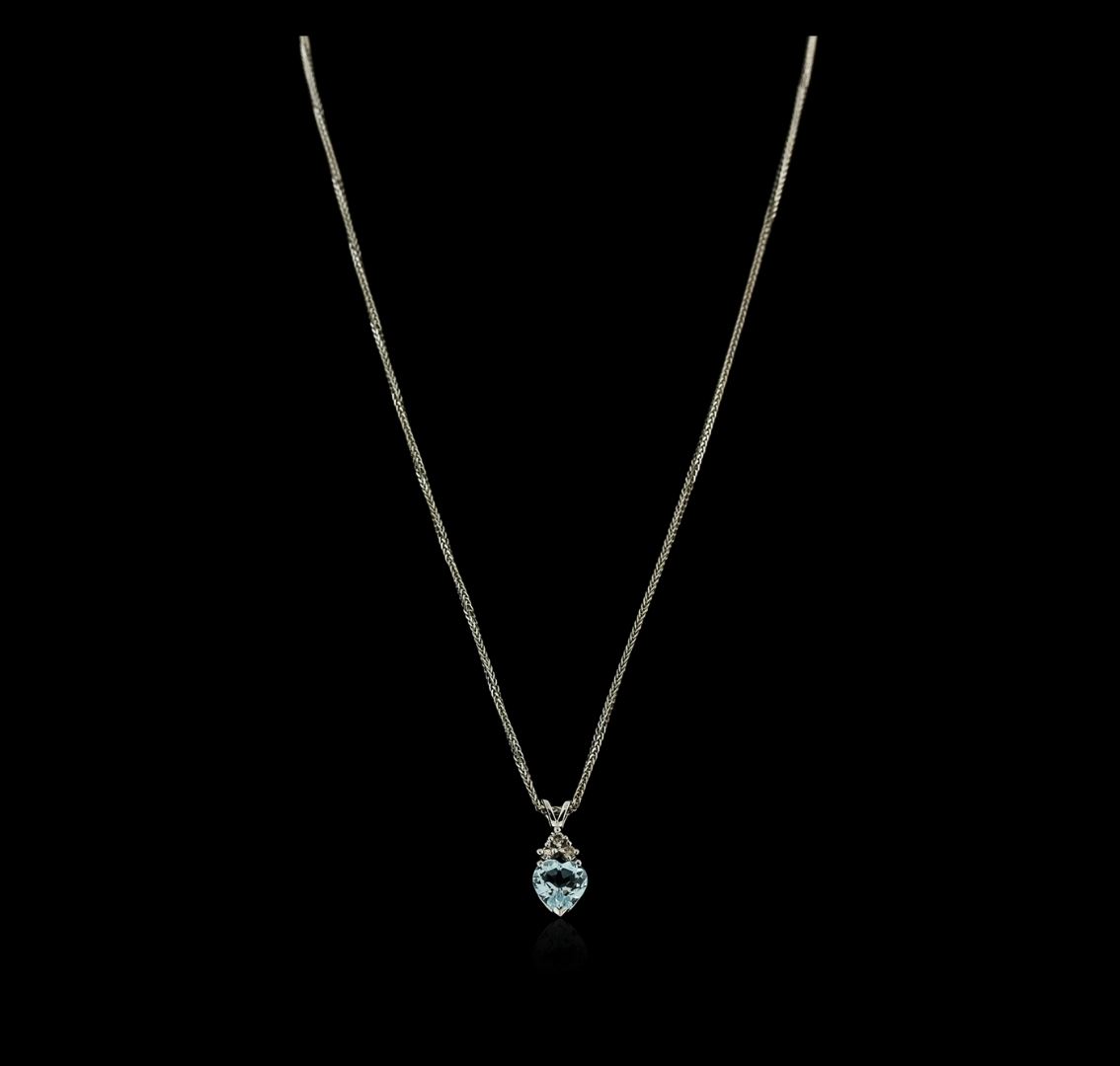 One pendant with chain featuring: 14KT white gold weighing 4.20 grams containing one aquamarine with a total weight of 0.50ct and diamonds with a total weight of 0.10ct.