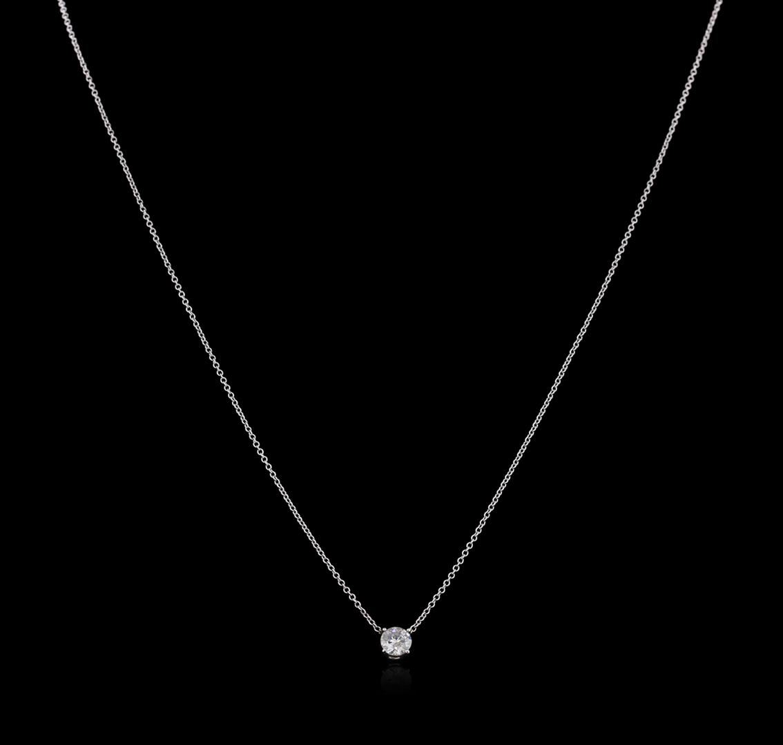 One solitaire pendant with chain featuring: 14KT white gold weighing 1.30 grams containing one diamond with a total weight of 0.50ct.