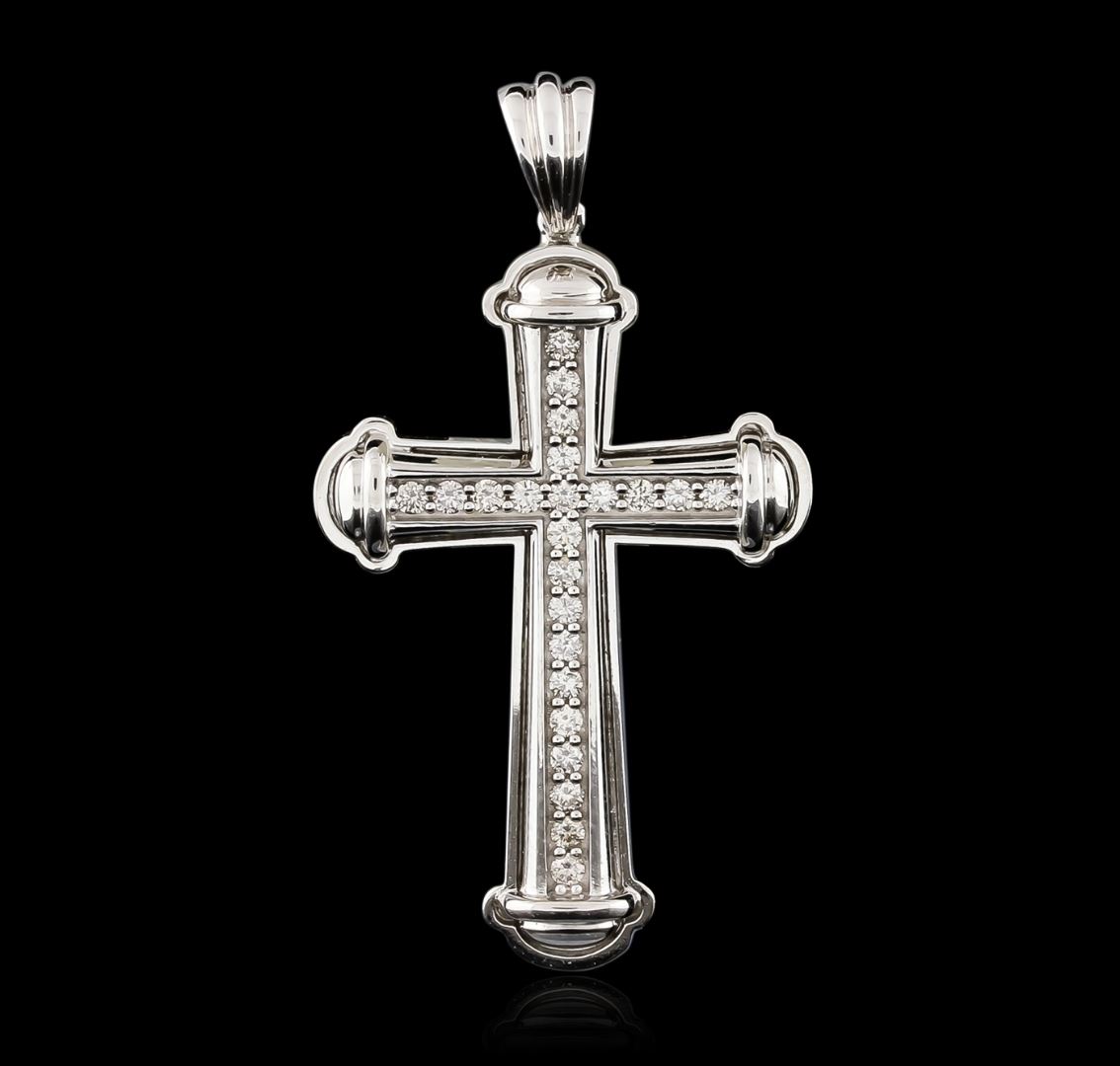 One cross pendant featuring: 14KT white gold weighing 6.80 grams containing diamonds with a total weight of 0.50ct.