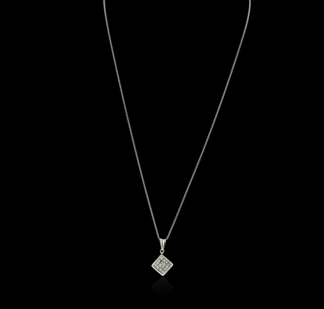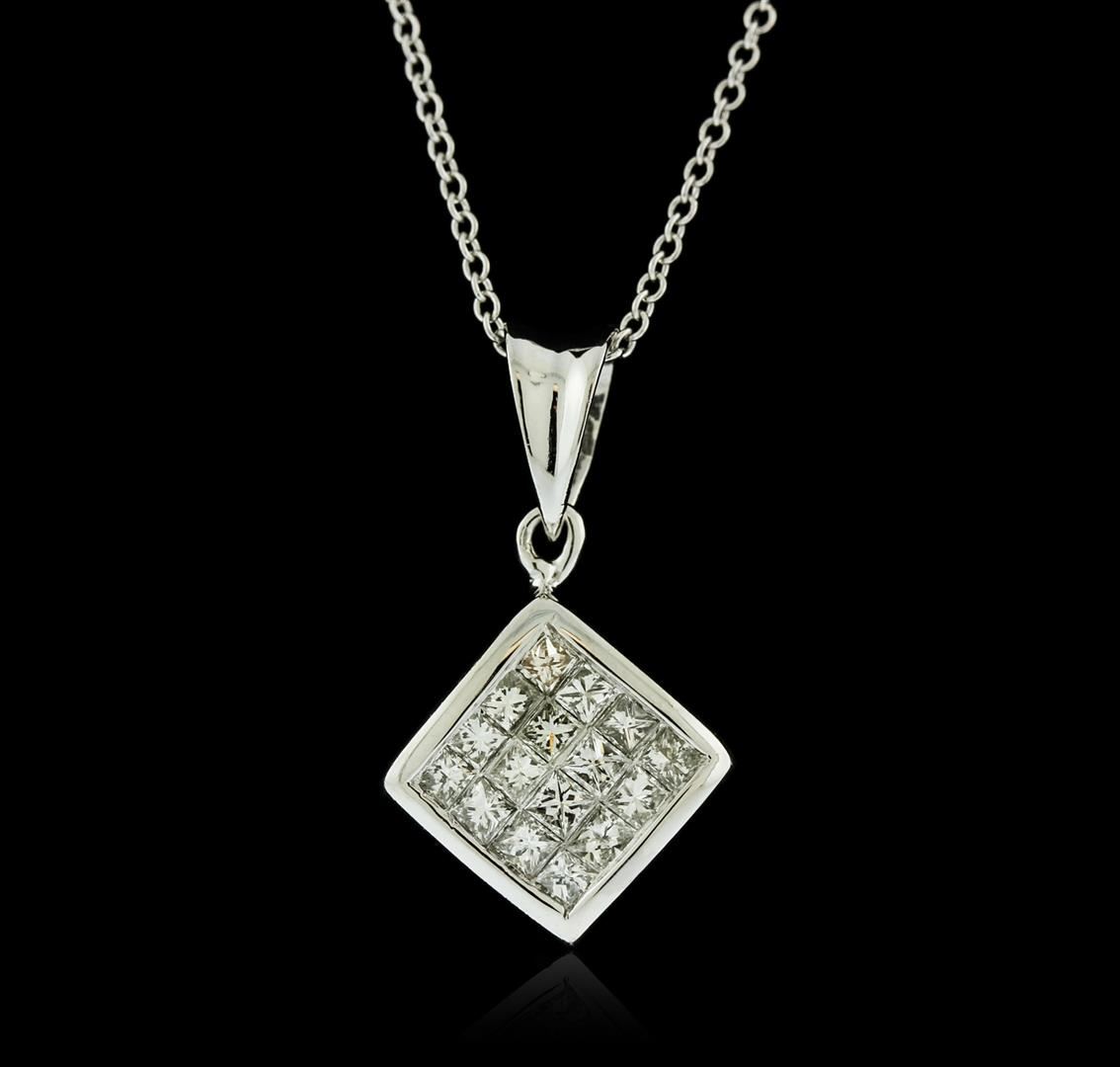 One pendant with chain featuring: 14KT white gold weighing 2.90 grams containing diamonds with a total weight of 0.50ct.