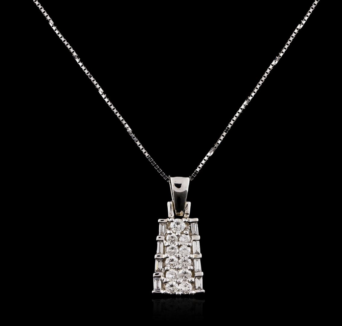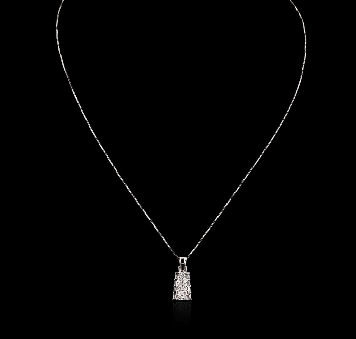 One pendant with chain featuring: 14KT white gold weighing 3.33 grams containing diamonds with a total weight of 0.50ct.