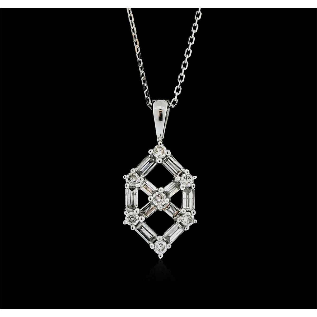 One pendant with chain featuring: 14KT white gold weighing 1.30 grams containing diamonds with a total weight of 0.50ct.