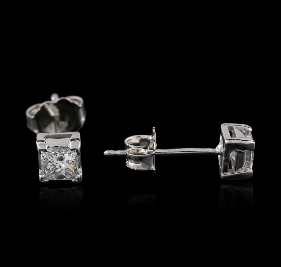 One pair of stud earrings featuring: 14KT white gold weighing 1.29 grams containing two diamonds with a total weight of 0.50ct.