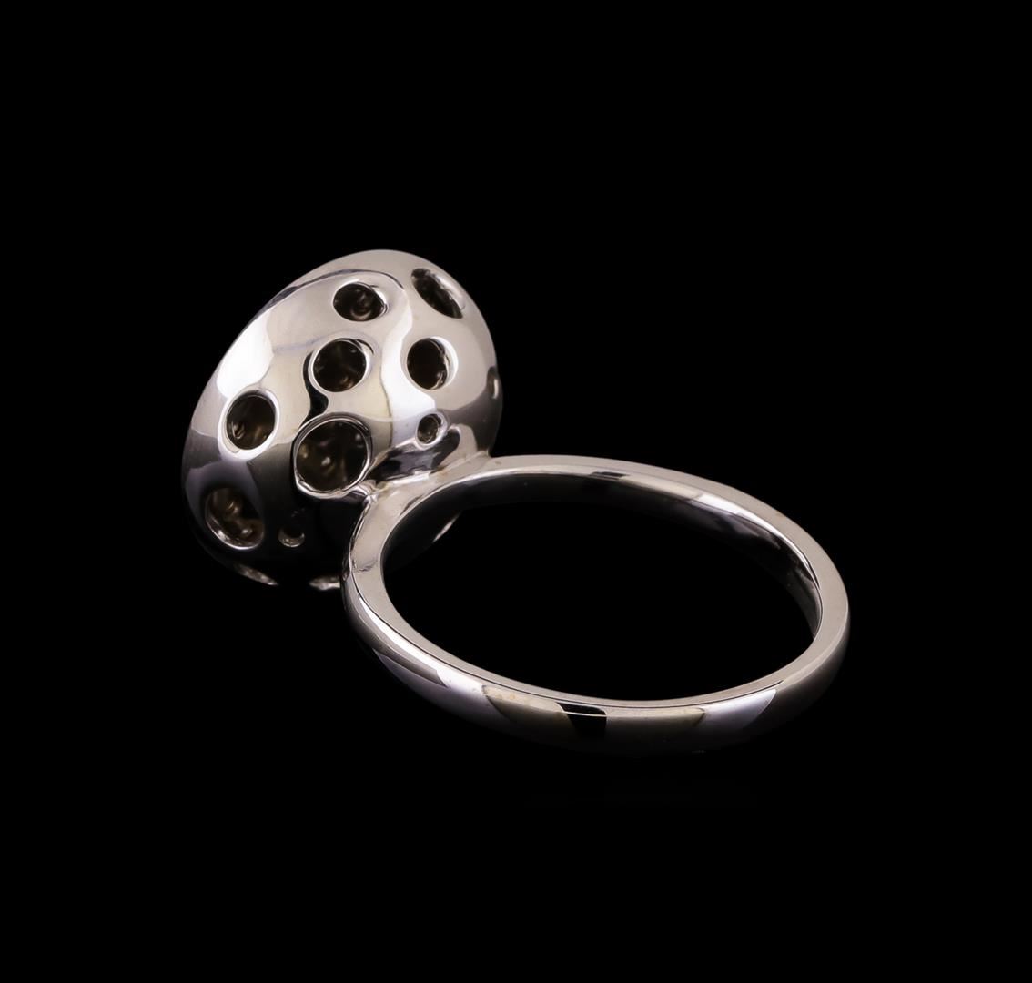 One electronically tested 14KT white gold ladies cast diamond ring with a bright polish finish. Identified with markings of "585". Condition is new. Containing: Thirty-Four prong set round brilliant cut diamonds, measuring 1.60 - 1.60 x 0.96mm (depth est.) approximate total weight of 34 Stones = 0.51ct. Clarity: SI-1 to SI-2. Color: I - J, Cut is Good. All diamonds are graded in the mounting, unless otherwise stated. Total Weight of Diamonds 0.51ct. Total Weight of Ring 5.30 grams. GGL Appraised at $2,985.00.