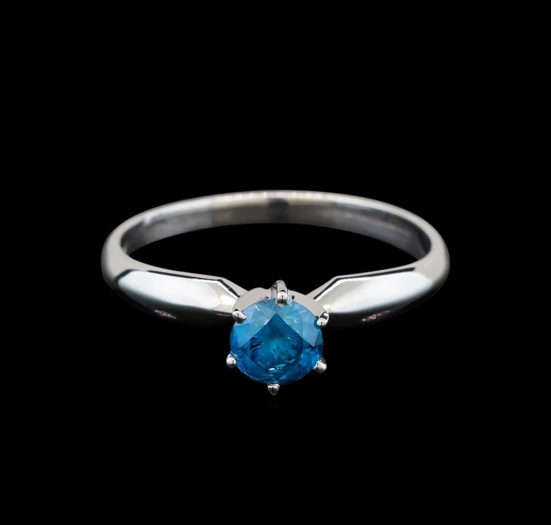 One electronically tested 14KT white gold ladies cast diamond solitaire ring with a knife edge shank with a bright polish finish. Identified with markings of "14K". Condition is new. Containing: One prong set round brilliant cut diamond, measuring 5.40 - 5.40 x 3.51mm (depth est.) exact weight 0.57ct. Clarity: I-2, Cut is Good. Color of the stone has been treated. Diamonds are graded in the mounting, unless otherwise stated. Total Weight of Diamonds 0.57ct. Total Weight of Solitaire Ring 2.40 grams. GGL Appraised at $1,200.00.