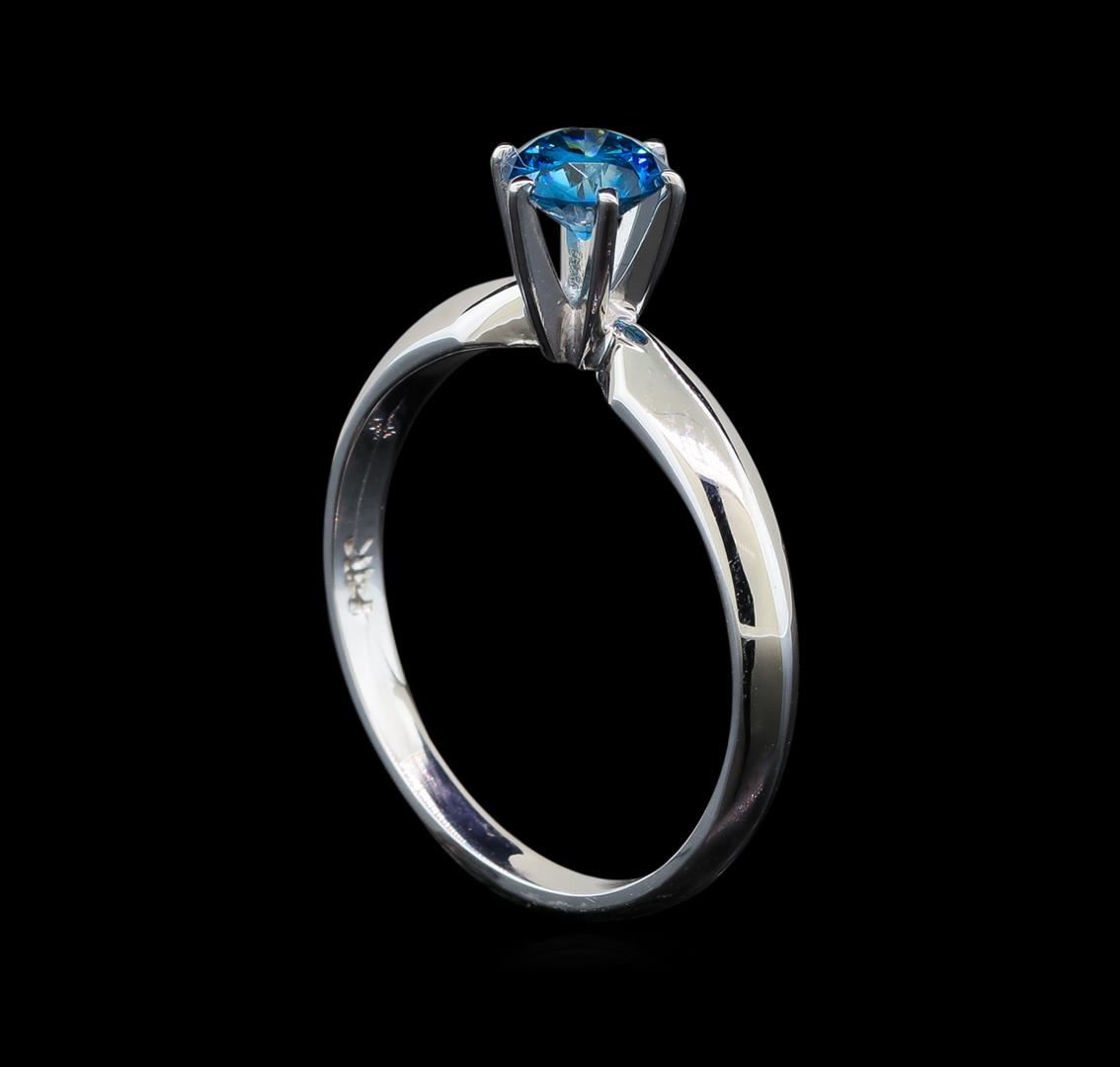 One electronically tested 14KT white gold ladies cast diamond solitaire ring with a knife edge shank with a bright polish finish. Identified with markings of "14K". Condition is new. Containing: One prong set round brilliant cut diamond, measuring 5.40 - 5.40 x 3.51mm (depth est.) exact weight 0.57ct. Clarity: I-2, Cut is Good. Color of the stone has been treated. Diamonds are graded in the mounting, unless otherwise stated. Total Weight of Diamonds 0.57ct. Total Weight of Solitaire Ring 2.40 grams. GGL Appraised at $1,200.00.