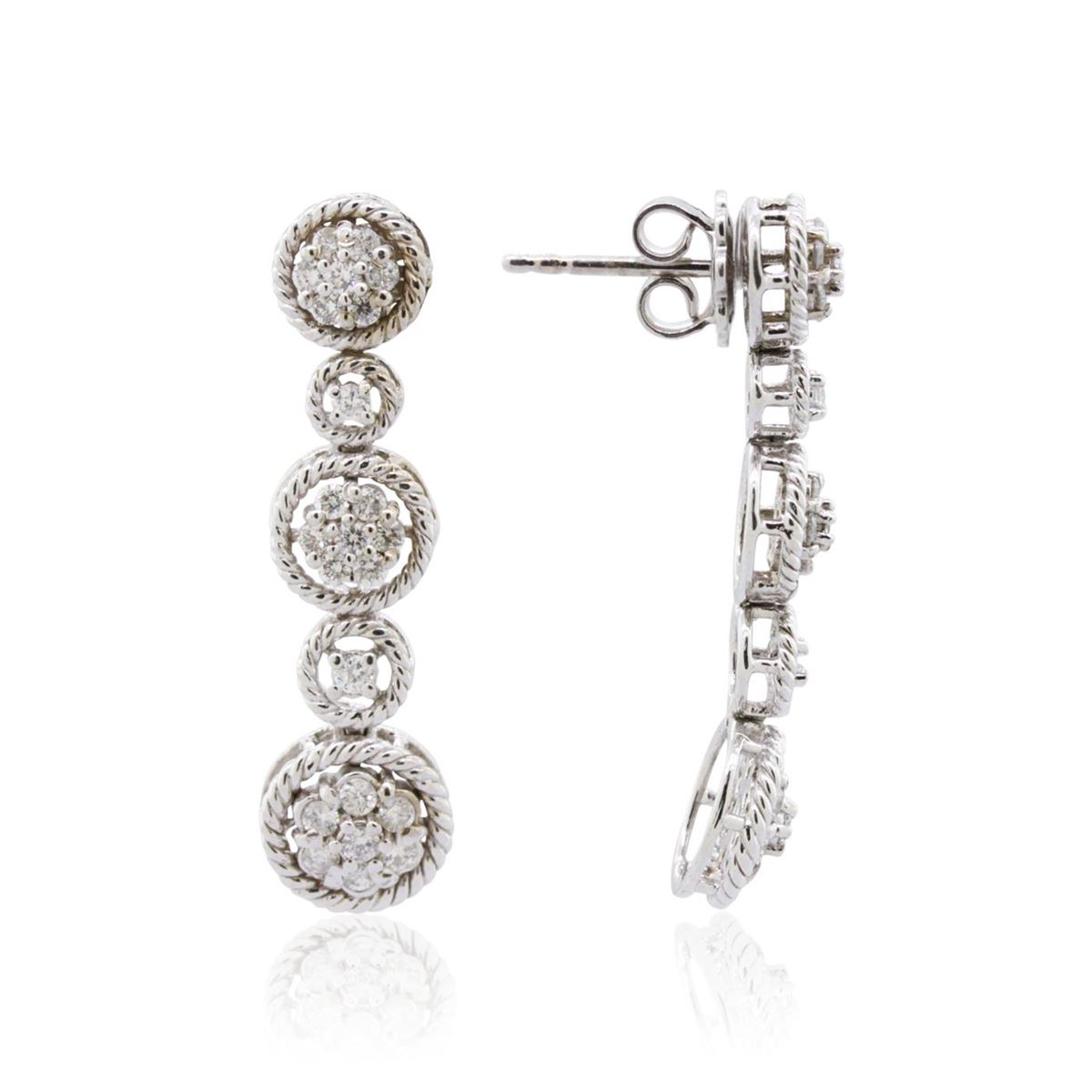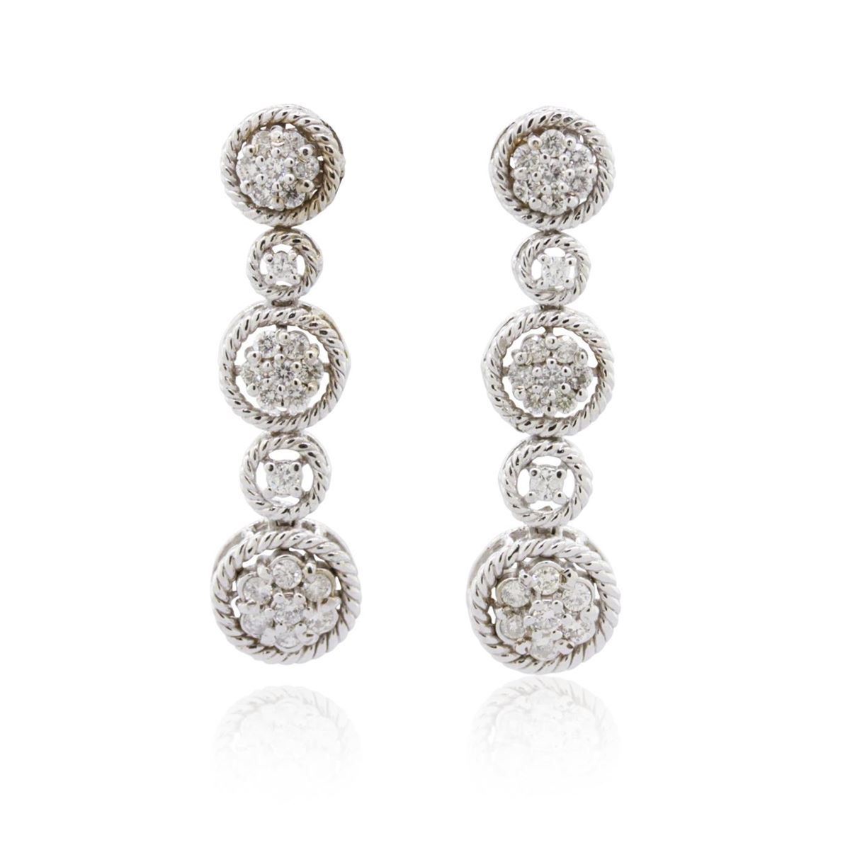 One pair electronically tested 14KT white gold ladies combination cast & assembled diamond earrings with friction posts with a bright polish finish. Identified with markings of 585. Condition is new. Containing: Forty-Six prong set round brilliant cut diamonds, measuring 1.50 - 1.50 x 0.90mm (depth est.) approximate total weight of 46 Stones = 0.57ct. Clarity: SI-1 to I-1. Color: I - J, Cut is Good. All diamonds are graded in the mounting, unless otherwise stated. Total Weight of Diamonds 0.57ct. Total Weight of Earrings 6.70 grams. GGL Appraised at $4,070.00.
