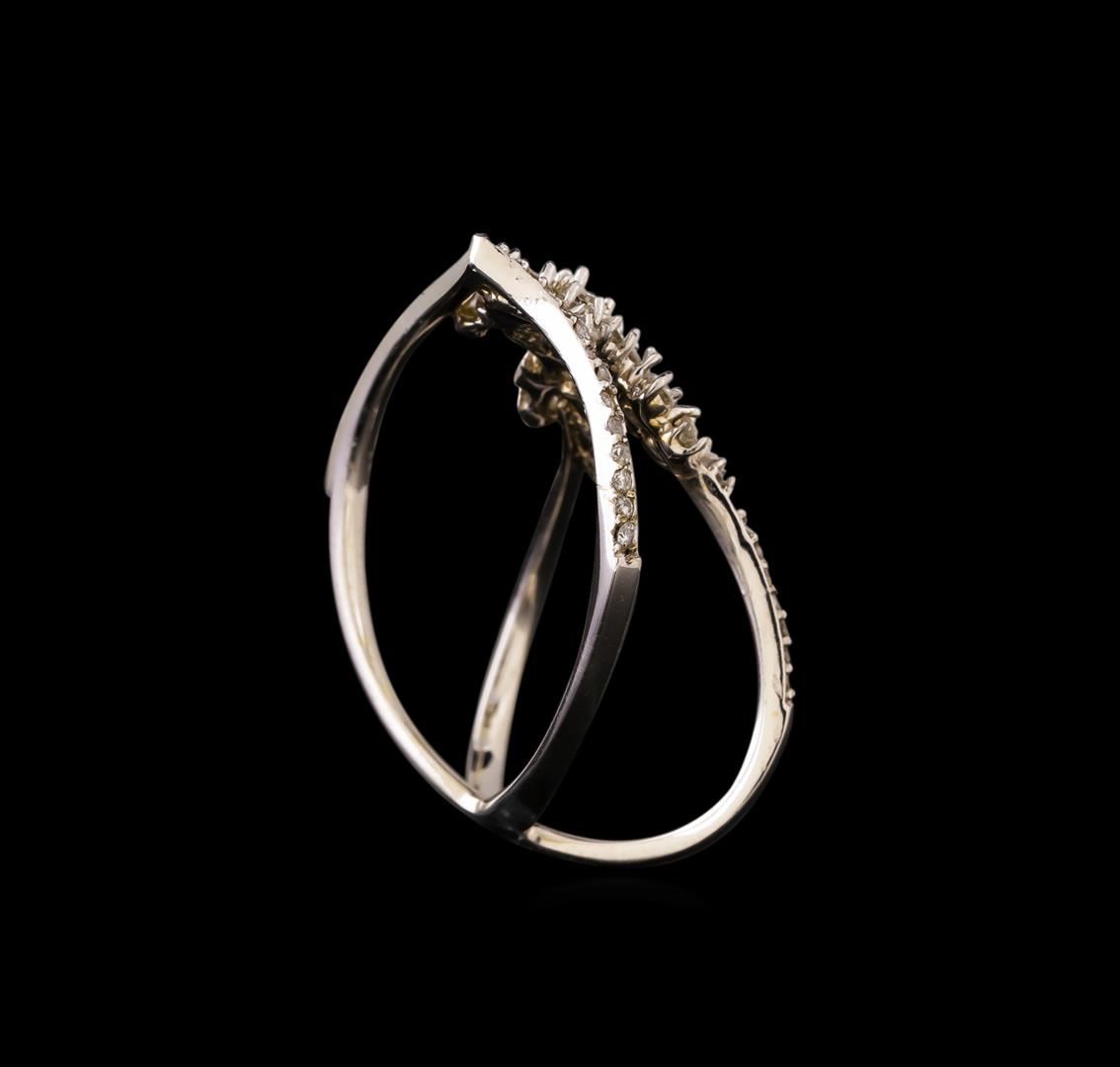 One electronically tested 14KT white gold ladies combination cast & assembled diamond ring with a custom shank with a bright polish finish. Identified with markings of "K14". Condition is new. Containing: Twenty-Three prong set round brilliant cut diamonds, measuring 2.50 - 1.80 x 1.29mm (depth est.) approximate total weight of 23 Stones = 0.40ct. Clarity: SI-1 to SI-2. Color: H - I, Cut is Good. Fifty-One prong set round brilliant cut diamonds, measuring 1.00 - 1.00 x 0.60mm (depth est.) approximate total weight of 51 Stones = 0.18ct. Clarity: I-1 to I-2. Color: H - I, Cut is Good. All diamonds are graded in the mounting, unless otherwise stated. Total Weight of Diamonds 0.58ct. Total Weight of Ring 4.30 grams. GGL Appraised at $3,050.00.