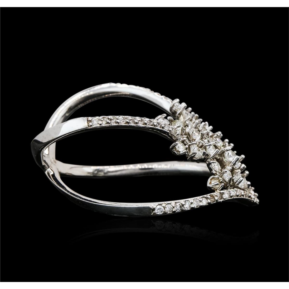 One electronically tested 14KT white gold ladies combination cast & assembled diamond ring with a custom shank with a bright polish finish. Identified with markings of "K14". Condition is new. Containing: Twenty-Three prong set round brilliant cut diamonds, measuring 2.50 - 1.80 x 1.29mm (depth est.) approximate total weight of 23 Stones = 0.40ct. Clarity: SI-1 to SI-2. Color: H - I, Cut is Good. Fifty-One prong set round brilliant cut diamonds, measuring 1.00 - 1.00 x 0.60mm (depth est.) approximate total weight of 51 Stones = 0.18ct. Clarity: I-1 to I-2. Color: H - I, Cut is Good. All diamonds are graded in the mounting, unless otherwise stated. Total Weight of Diamonds 0.58ct. Total Weight of Ring 4.30 grams. GGL Appraised at $3,050.00.