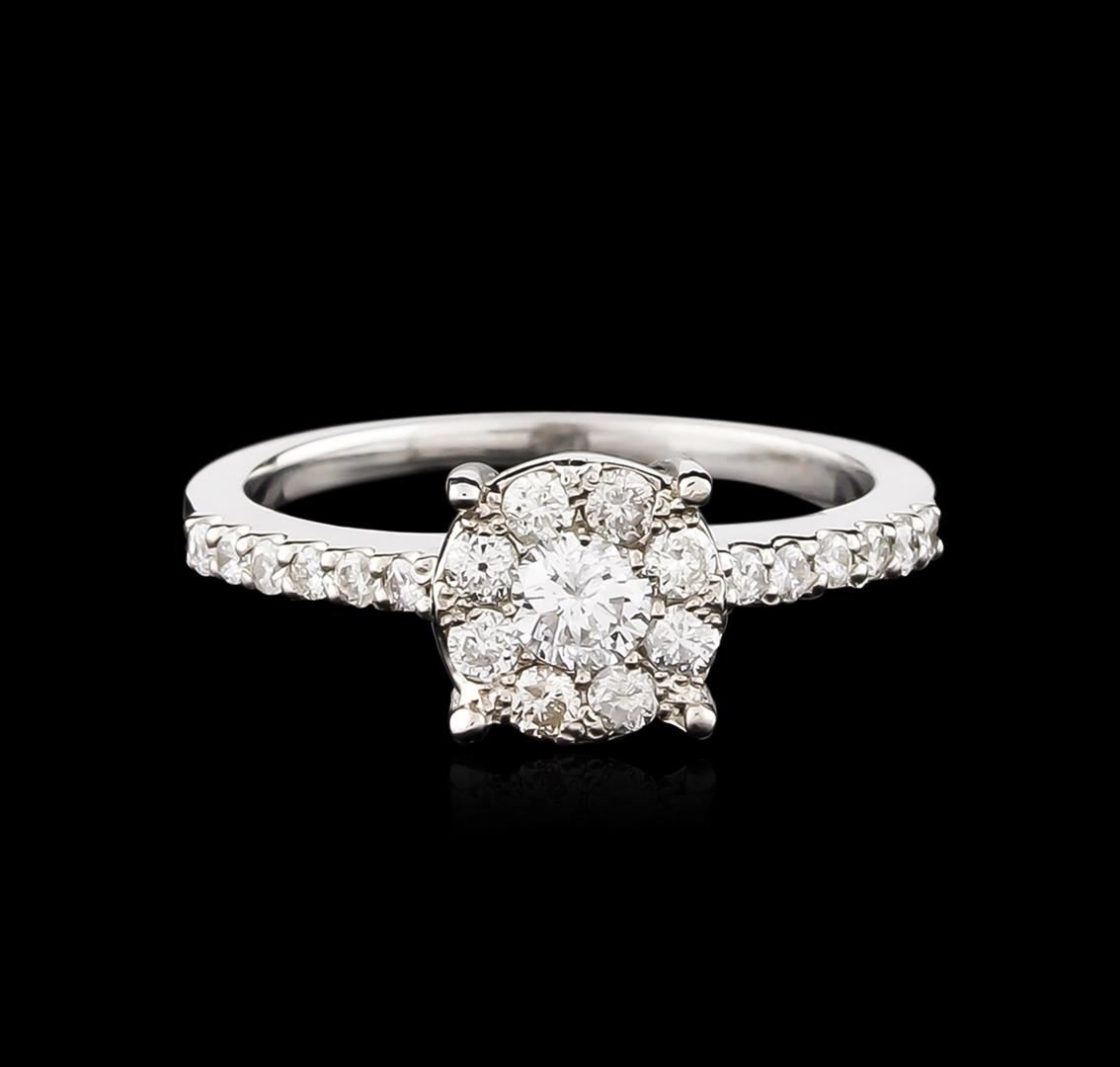 One ring featuring: 14KT white gold weighing 3.00 grams containing one diamond center stone with a total weight of 0.18 and diamonds with a total weight of 0.40ct.