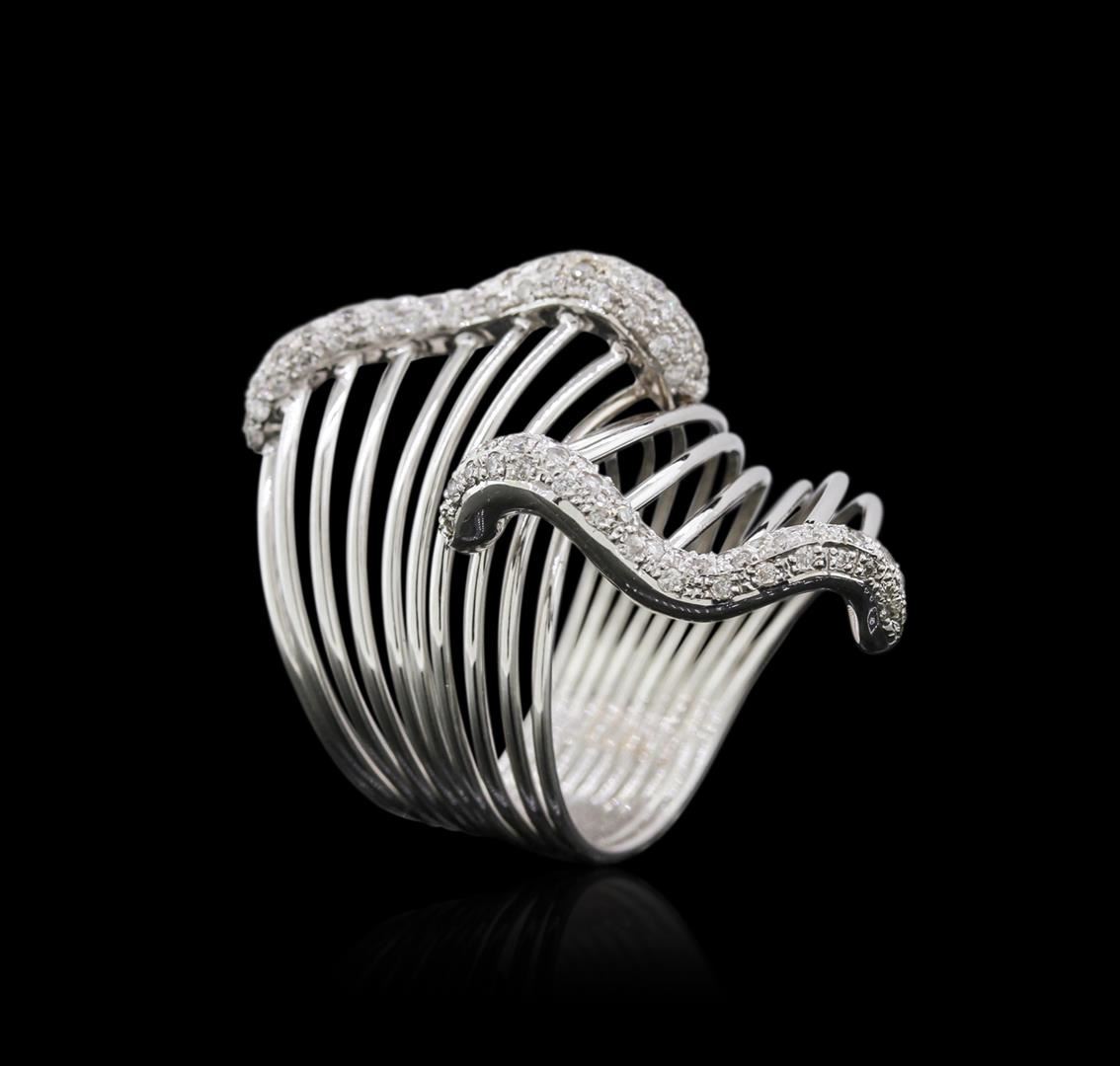 One electronically tested 14KT white gold ladies cast diamond ring with a bright polish finish. Condition is new. Containing: Ninety-Five prong set round brilliant cut diamonds, measuring 1.00 - 1.00 x 0.60mm (depth est.) approximate total weight of 95 Stones = 0.58ct. Clarity: I-1 to I-2. Color: H - I. All diamonds are graded in the mounting, unless otherwise stated. Total Weight of Diamonds 0.58ct. Total Weight of Ring 10.60 grams. GGL Appraised at $3,245.00.