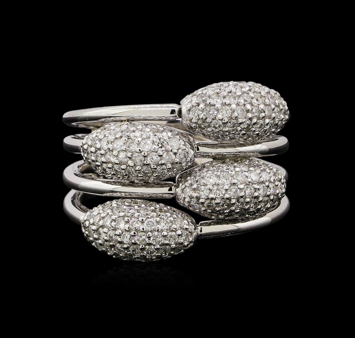 One electronically tested 14KT white gold ladies combination cast & assembled diamond ring with a bright polish finish. Identified with markings of "585". Condition is new. Containing: One Hundred Sixty-Four bead set round brilliant cut diamonds, measuring 1.00 - 1.00 x 0.60mm (depth est.) approximate total weight of 164 Stones = 0.59ct. Clarity: I-1 to I-2. Color: H - I, Cut is Good. All diamonds are graded in the mounting, unless otherwise stated. Total Weight of Diamonds 0.59ct. Total Weight of Ring 9.10 grams. GGL Appraised at $4,965.00.