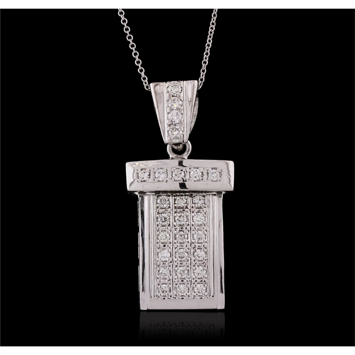 One pendant with chain featuring: 14KT white gold with a total weight of 11.43 grams, and diamonds with a total weight of 0.60ctw.