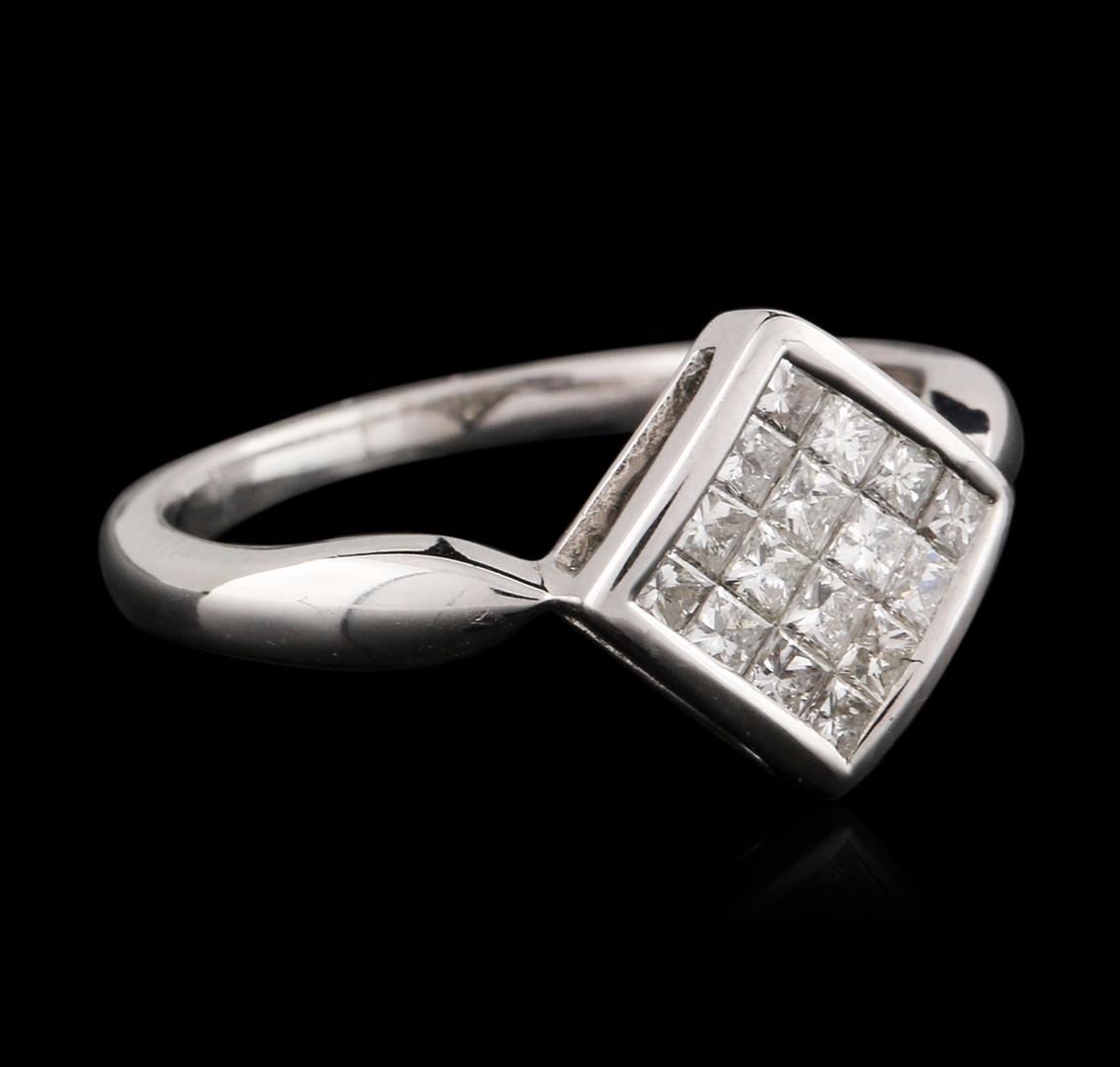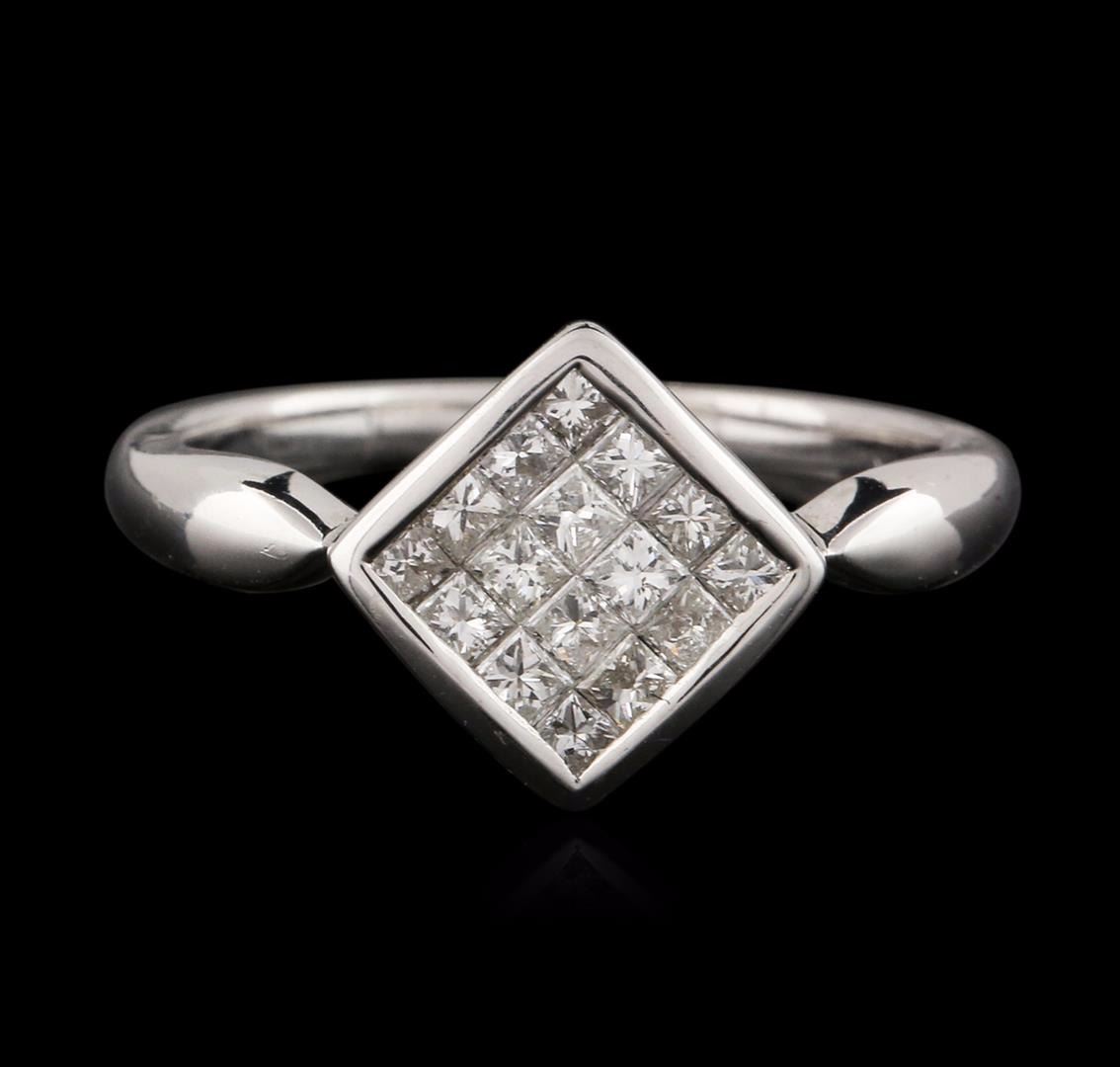 One ring featuring: 14KT white gold weighing 2.70 grams containing invisible set princess cut diamonds with a total weight of 0.60ct.
