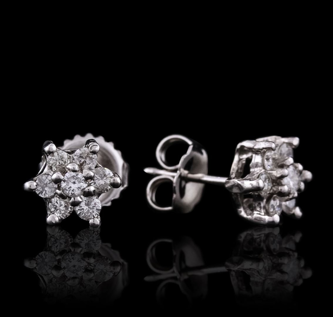 One pair of stud earrings featuring: 14KT White Gold with a total weight of 1.70 grams, and Diamonds with a total weight of 0.60ctw.