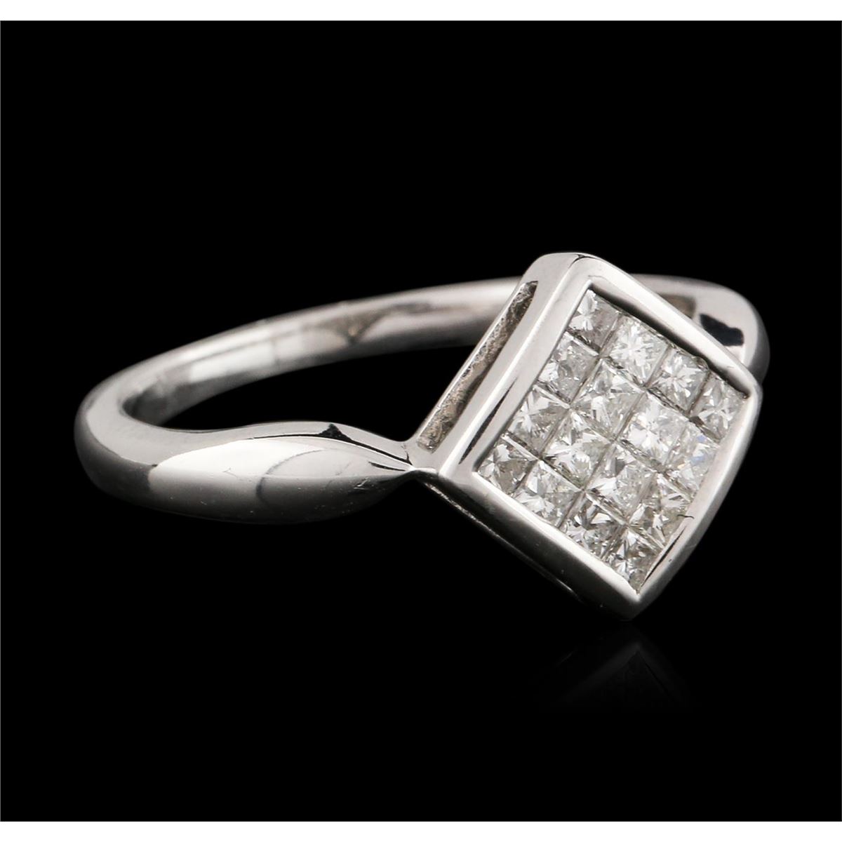 One ring featuring: 14KT white gold weighing 2.70 grams containing invisible set princess cut diamonds with a total weight of 0.60ct.