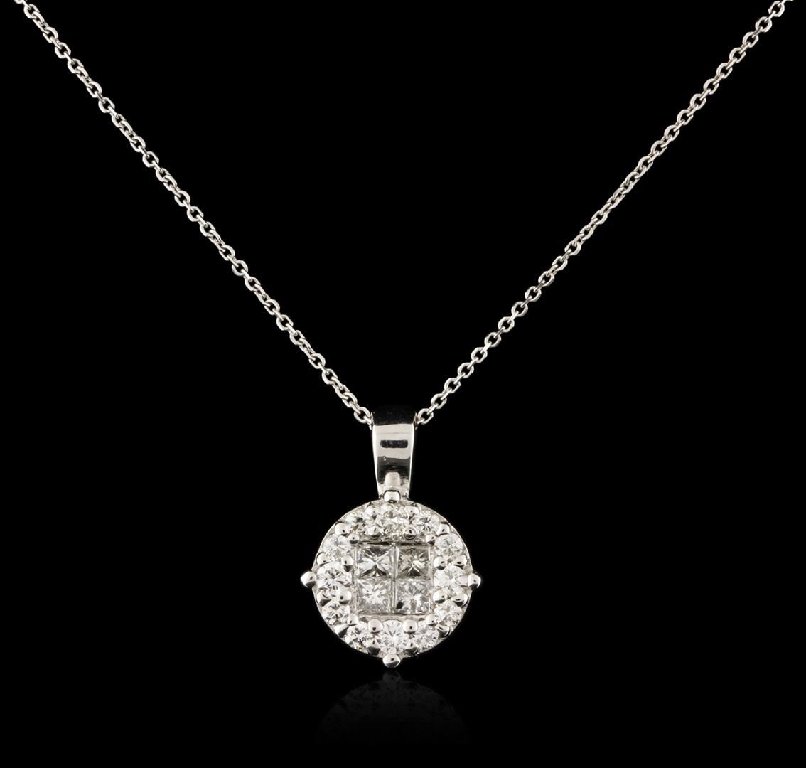 One pendant with chain featuring: 14KT white gold weighing 2.60 grams containing diamonds with a total weight of 0.61ct.