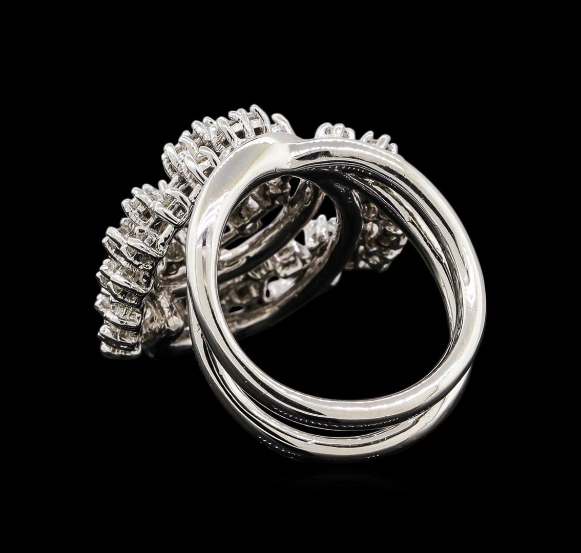One electronically tested 14KT white gold ladies cast diamond ring with a bright polish finish. Identified with markings of "K14". Condition is new. Containing: Fifty prong set round brilliant cut diamonds, measuring 1.50 - 1.50 x 0.90mm (depth est.) approximate total weight of 50 Stones = 0.62ct. Clarity: SI-2 to I-1. Color: J - K, Cut is Good. All diamonds are graded in the mounting, unless otherwise stated. Total Weight of Diamonds 0.62ct. Total Weight of Ring 12.30 grams. GGL Appraised.