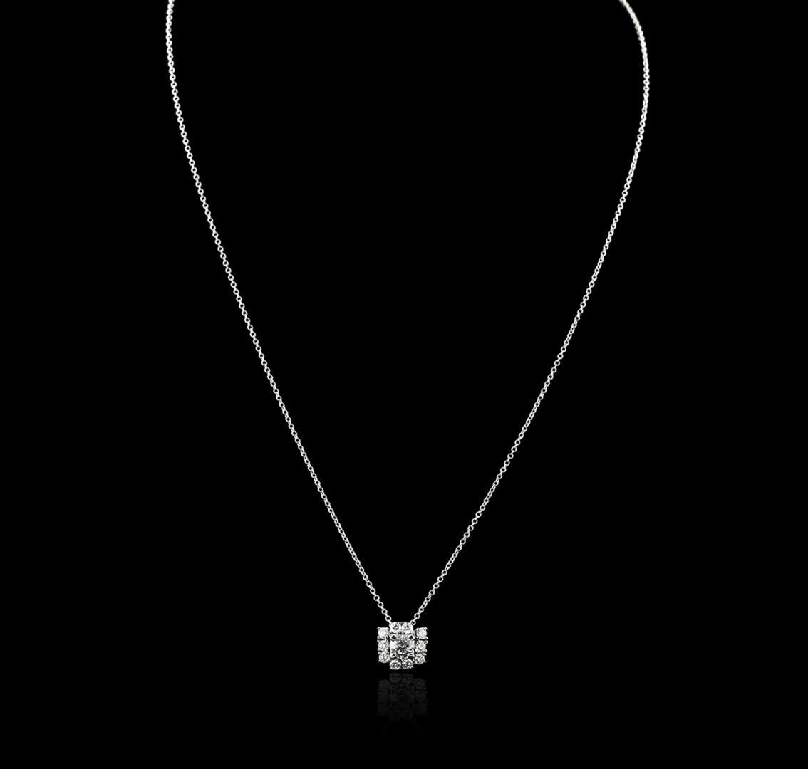 One pendant with chain featuring: 14KT white gold weighing 1.87 grams containing one diamond center stone with a total weight of 0.32ct and ten side diamonds with a total weight of 0.32ct.
