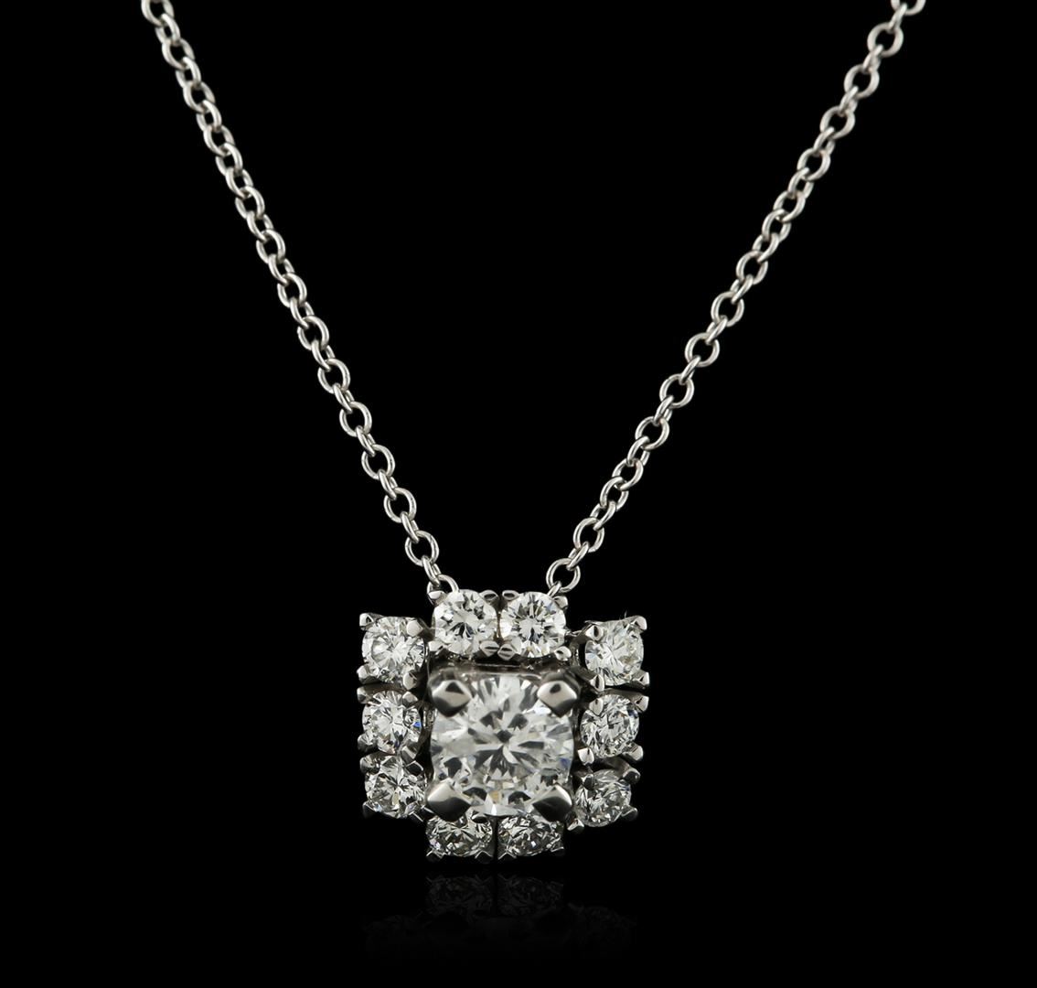 One pendant with chain featuring: 14KT white gold weighing 1.87 grams containing one diamond center stone with a total weight of 0.32ct and ten side diamonds with a total weight of 0.32ct.