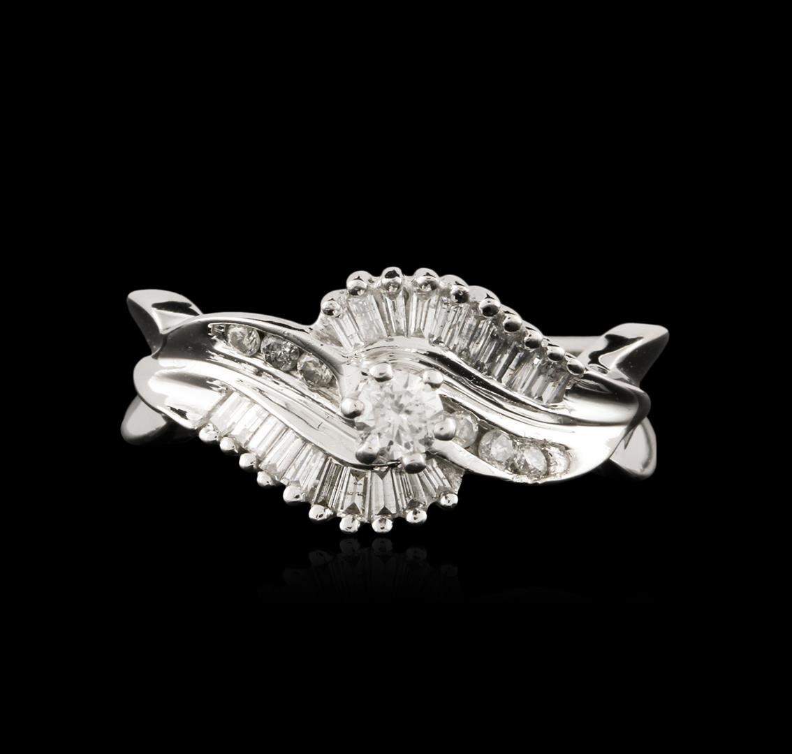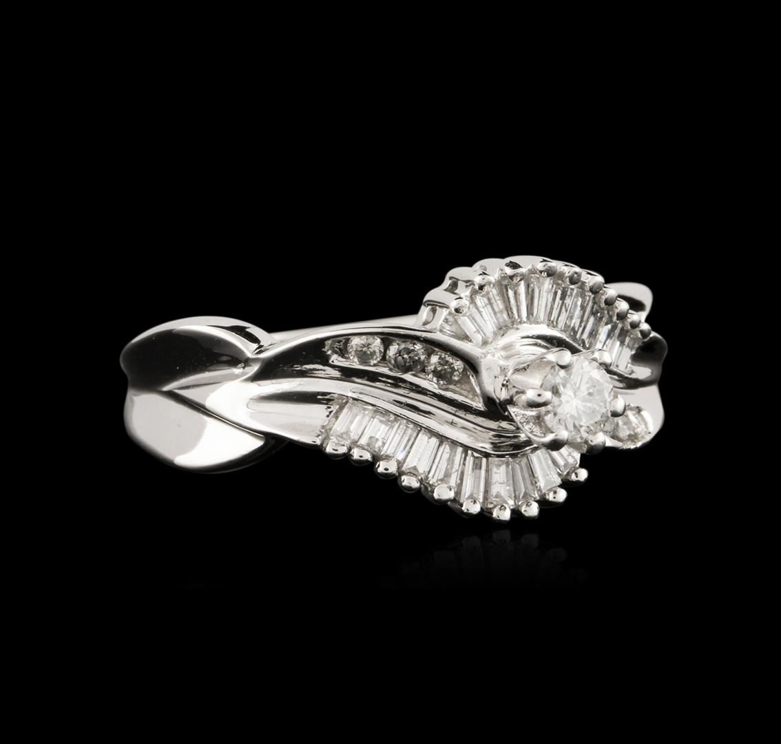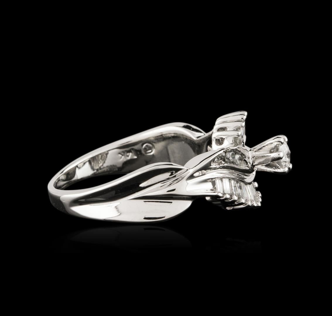 One ring featuring: 14KT white gold weighing 5.60 grams containing one prong set round center diamond with a total weight of 0.14ct and channel set round side diamonds with a total weight of 0.50ct.