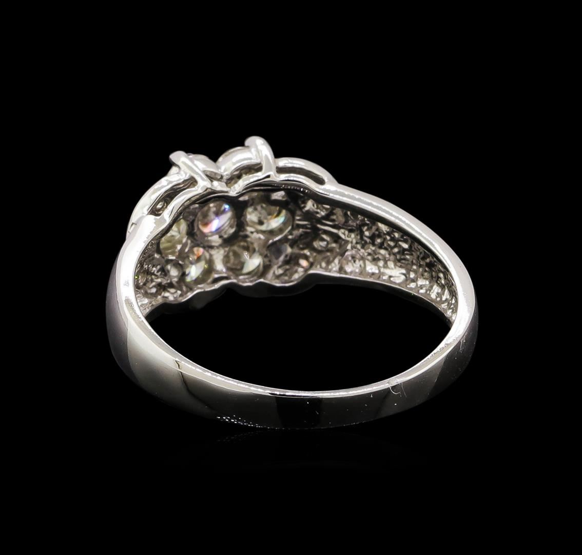 One electronically tested 14KT white gold ladies combination cast & assembled diamond ring with a bright polish finish. Condition is new. Containing: Seven prong set round brilliant cut diamonds, measuring 3.20 - 2.80 x 1.80mm (depth est.) approximate total weight of 7 Stones = 0.60ct. Clarity: SI-2 to I-1. Color: J, Cut is Good. Eight prong set round brilliant cut diamonds, measuring 1.20 - 1.20 x 0.72mm (depth est.) approximate total weight of 8 Stones = 0.05ct. Clarity: SI-2 to I-1. Color: I - J, Cut is Good. All diamonds are graded in the mounting, unless otherwise stated. Total Weight of Diamonds 0.65ct. Total Weight of Ring 2.50 grams. GGL Appraised at $2,205.00.