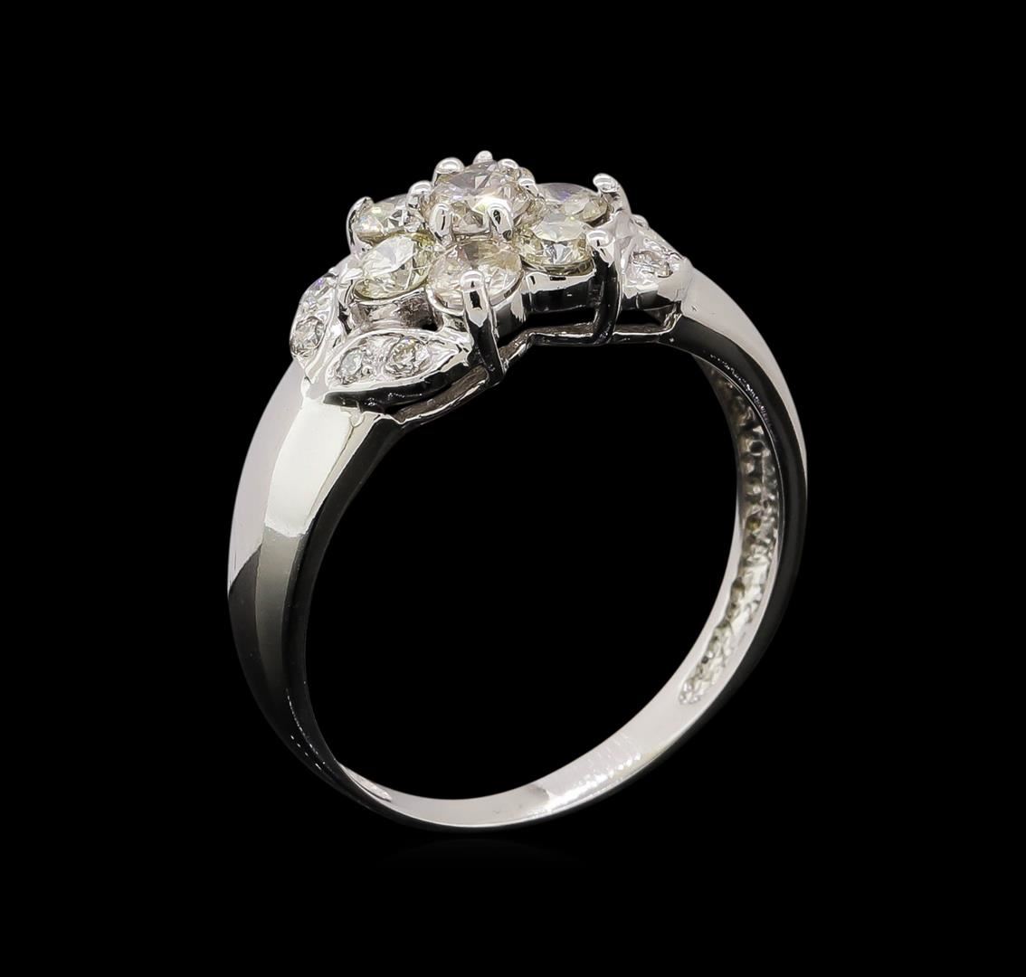 One electronically tested 14KT white gold ladies combination cast & assembled diamond ring with a bright polish finish. Condition is new. Containing: Seven prong set round brilliant cut diamonds, measuring 3.20 - 2.80 x 1.80mm (depth est.) approximate total weight of 7 Stones = 0.60 ct. Clarity: SI-2 to I-1. Color: J, Cut is Good. Eight prong set round brilliant cut diamonds, measuring 1.20 - 1.20 x 0.72mm (depth est.) approximate total weight of 8 Stones = 0.05ct. Clarity: SI-2 to I-1. Color: I - J, Cut is Good. All diamonds are graded in the mounting, unless otherwise stated. Total Weight of Diamonds 0.65ct. Total Weight of Ring 2.50 grams. GGL Appraised.