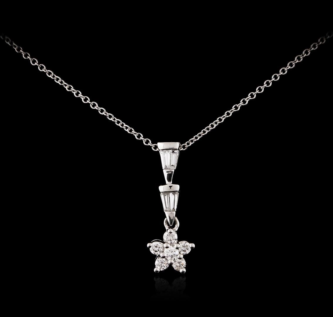 One pendant with chain featuring: 14KT white gold weighing 2.70 grams containing diamonds with a total weight of 0.65ct.